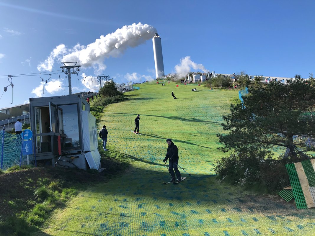Das Freizeitzentrum in Kopenhagen ist ein wahres Leuchtturmprojekt. Höher als die höchste natürliche Erhebung Dänemarks ragt die Müllverbrennungsanlage wie ein Flagschiff aus dem Boden. Auf dem Dach der Anlage, die 30.000 Haushalte mit Recycling-Strom und 72.000 Haushalte mit Wärme versorgt, wurde im Sommer 2019 ein einzigartiges Naherholungsgebiet geschaffen und am Wochenende von 04.-06. Oktober 2019 nach langem Warten eröffnet. Ski-Lifte und eine 450 Meter lange Piste aus Matten locken seitdem die skiaffinen Dänen aufs Dach von Copenhill. Das Angebot inkludiert eine eigene Skischule, Skiverleih, Wander- und Berglauf-Trails, Kletterwand, Aprés-Ski Bar und Hüttenkulinarik.