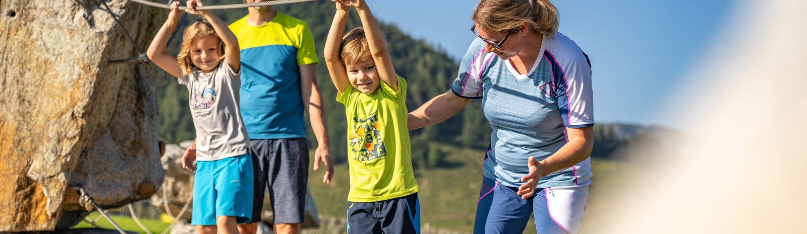 Kletterfexe aufgepasst! In Timoks Wilder Welt erwarten euch sechs riesige Granitblöcke, die durch einen Übungsklettersteig miteinander verbunden sind. Hier könnt ihr eure Kletterkünste unter Beweis stellen und zudem euer Gleichgewicht auf den zwei Slacklines testen. Egal ob Anfänger oder erfahrene Boulderer, dieser Kraxelspaß ist für jeden geeignet und verspricht unvergessliche Abenteuer-Momente!
