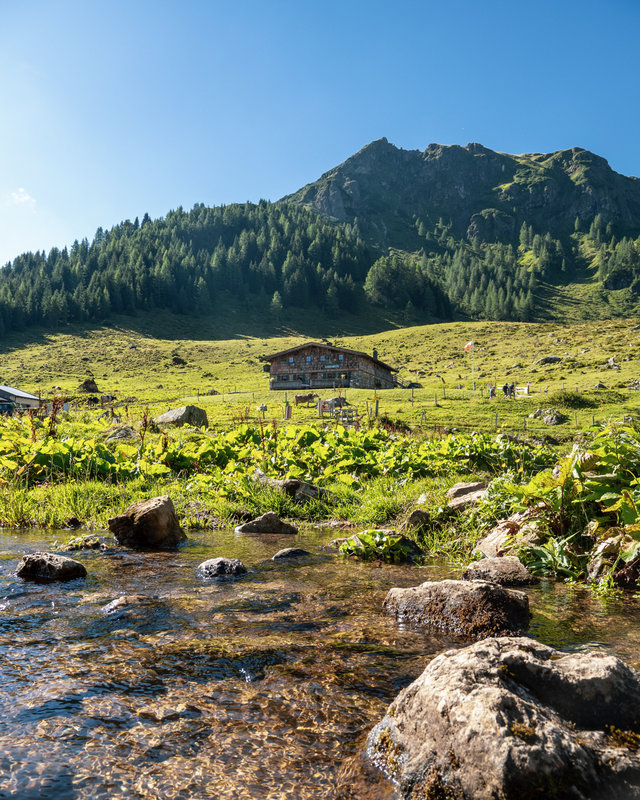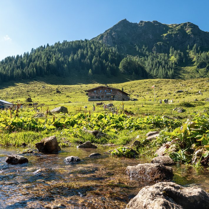 Immer der Markierung Nr. 12 folgend, geht es von der Bergstation Lärchfilzkogel ein Stück bergab bis zu den Wildalmen, anschließend Richtung Osten bis zur Grießenbodenalm. Die vielen noch traditionell bewirtschafteten Almen sind der besondere Reiz dieser Wanderung. Bis zur Lärchfilzhochalm beträgt die Gehzeit rund 50 Minuten. Über den Jägersteig kommt man in ca. 45 Minuten zur Mittelstation Streuböden.