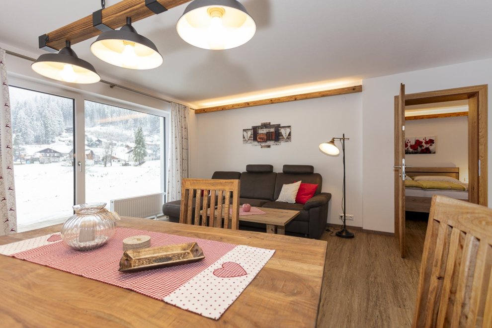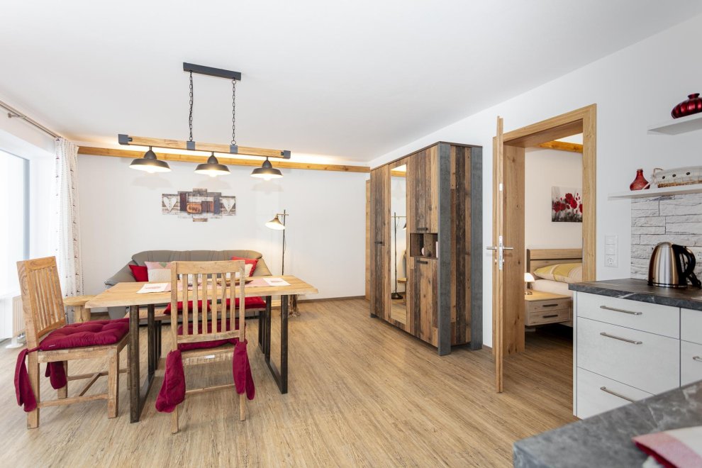 Sitzgruppe, Kühlschrank, Balkon, Bettwäsche vorhanden, Wasserkocher, Wohnzimmer, Nichtraucher Zimmer/App./Whg., Fußende der Betten offen, Separate Schlafzimmer: 2, Geschirrspülbecken, Separate Küche, Elektroherd, Familienzimmer / app., Ohne Teppich, Haustiere nicht erlaubt, Geschirr vorhanden, Balkon (teilweise), Geschirrspülmaschine, Internetanschlussmöglichkeit, WiFi, Vorraum, Fernseher, Rauchmelder, Küche, Balkonmöbel, Rustikale Möblierung, Haarföhn, Grundausstattung (Handtücher, Bettwäsche, Seife, Toilettenpapier), Handtücher vorhanden, Kaffee-Maschine, Heizung, Kabelfernsehen, Decken, Toaster, Dunstabzug