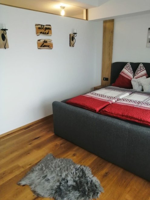 Unser Apartement bietet 2 Schlafzimmer, 2 Bäder, Wohnzimmer, Küche und einen großen Vorraum mit Schuhtrockner. Ihr Auto kann bequem im Carport geparkt werden. Für ihr E-Auto steht ihnen eine Ladestation (gegen Gebühren) zur Verfügung. Der südliche Balkon bietet viel Sonne und einen schönen Ausblick. Auf Anfrage bieten wir Extras wie z.Bsp: