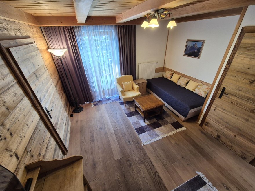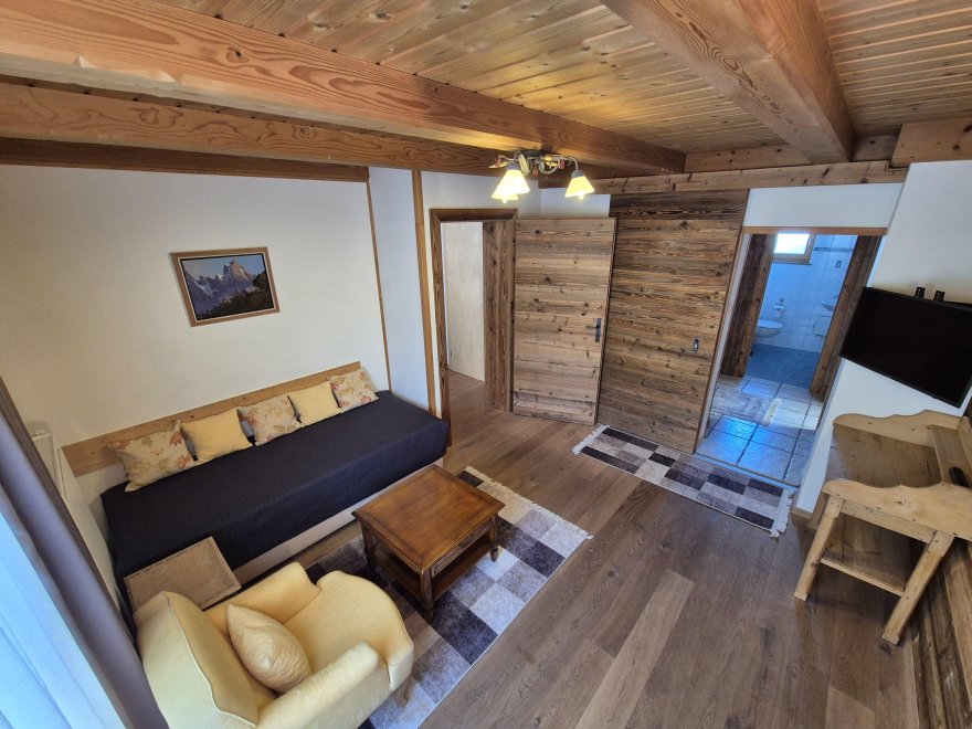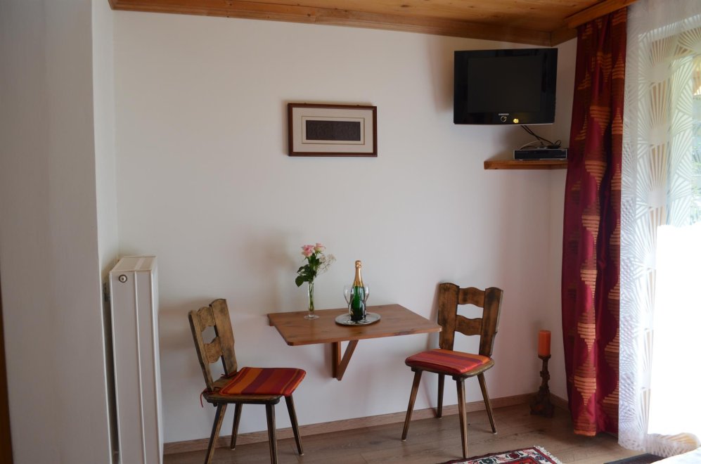 Die Wohnung besteht aus einem Wohn- und Schlafraum, Badezimmer mit Waschbecken, Kosmetikspiegel, DU/WC, Küchenzeile und Sitzecke. Die Küchenzeile ist mit Kochgelegenheit, kleinem Kühlschrank, Kaffeemaschine, Toaster, Mikrowelle, Wasserkocher, Geschirr ausgestattet. Das Wohn- und Schlafzimmer verfügt über 1 Doppelbett, TV, Sitzgelegenheit.