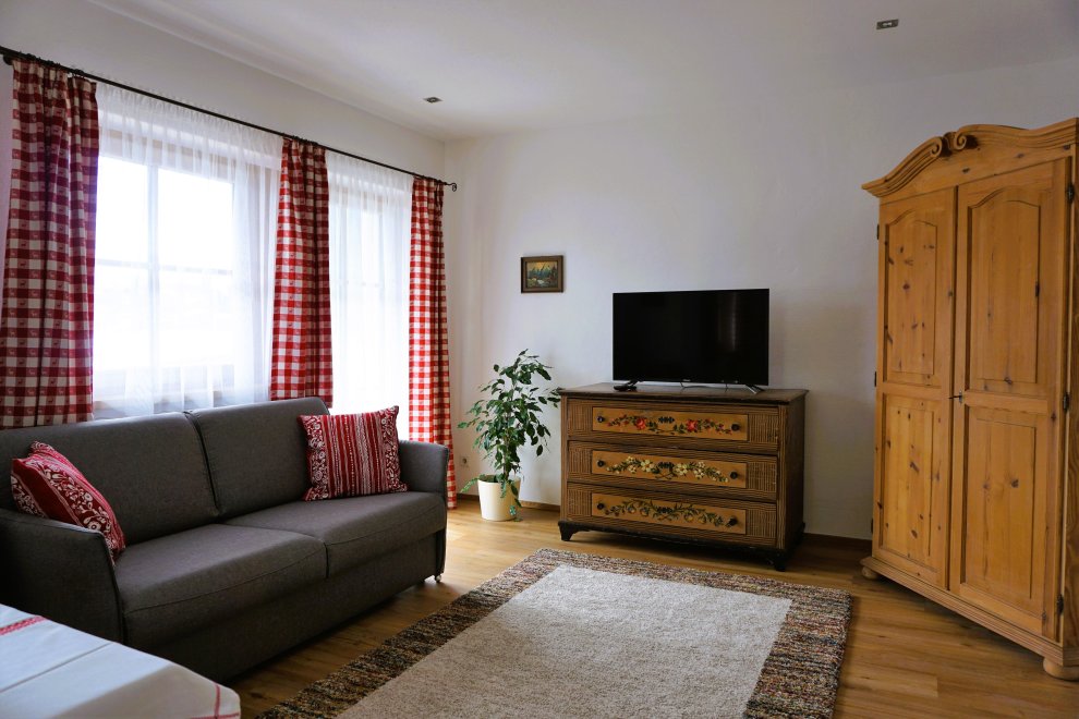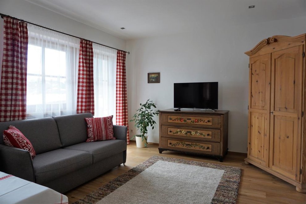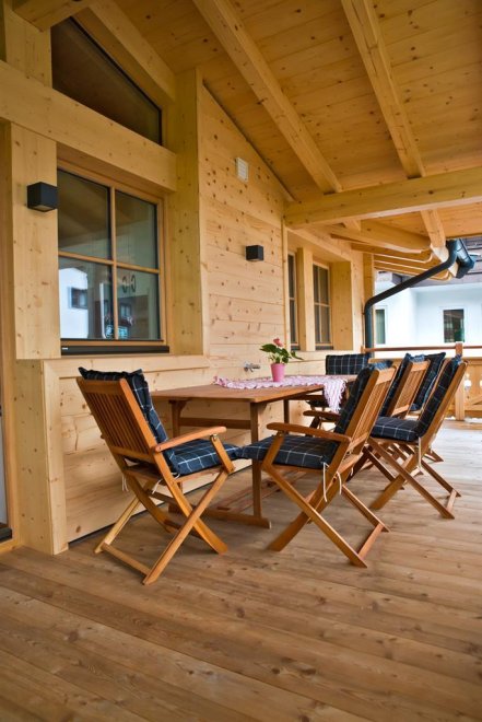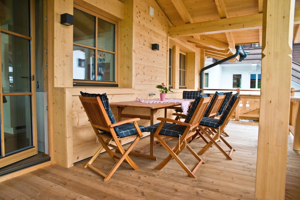 Von der großen und überdachten Terrasse aus, kann man den wunderschönen Blick auf die Berge genießen.Ausstattung Zimmer/Appartement