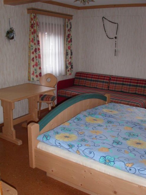 Das Zimmer besteht aus einem Doppelbett und eine Einzelbett. Es ist liebevoll im TIROLER STIL renoviert. Im Zimmer ist eine Sitzgelegenheit sowie Garderobe und Flachbildschirm mit Sat-Programmen. Das Badezimmer ist mit DU/WC ausgestattet.