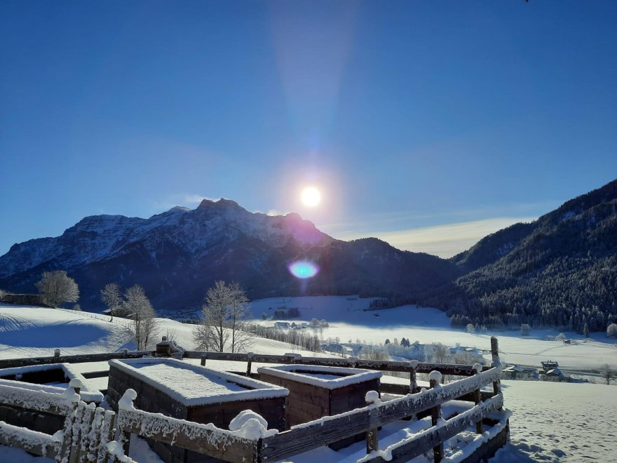 Wir heißen Sie herzlich willkommen bei uns im wunderschönen Waidring, wo ein ganz besonderer Platz auf Sie wartet. Umringt von den Loferer Steinbergen, der Waidringer Steinplatte, dem Fellhorn und dem Wilden Kaiser liegt unser idyllisch und ruhig gelegener BIO-Bauernhof. Seit Herbst 2025 dürfen wir - Melanie und Georg Hirzinger mit unseren 2 Kindern Rosalie und Valentin den Hof, der seit über 250 Jahren im Familienbesitz ist, mit ganz viel Stolz und Herzblut führen.