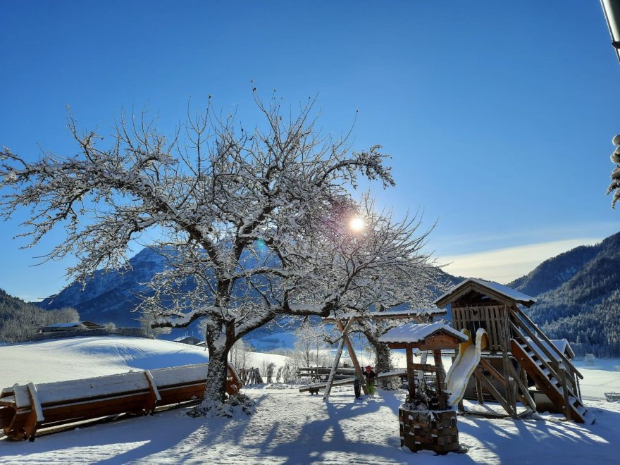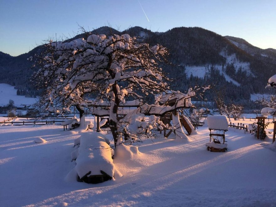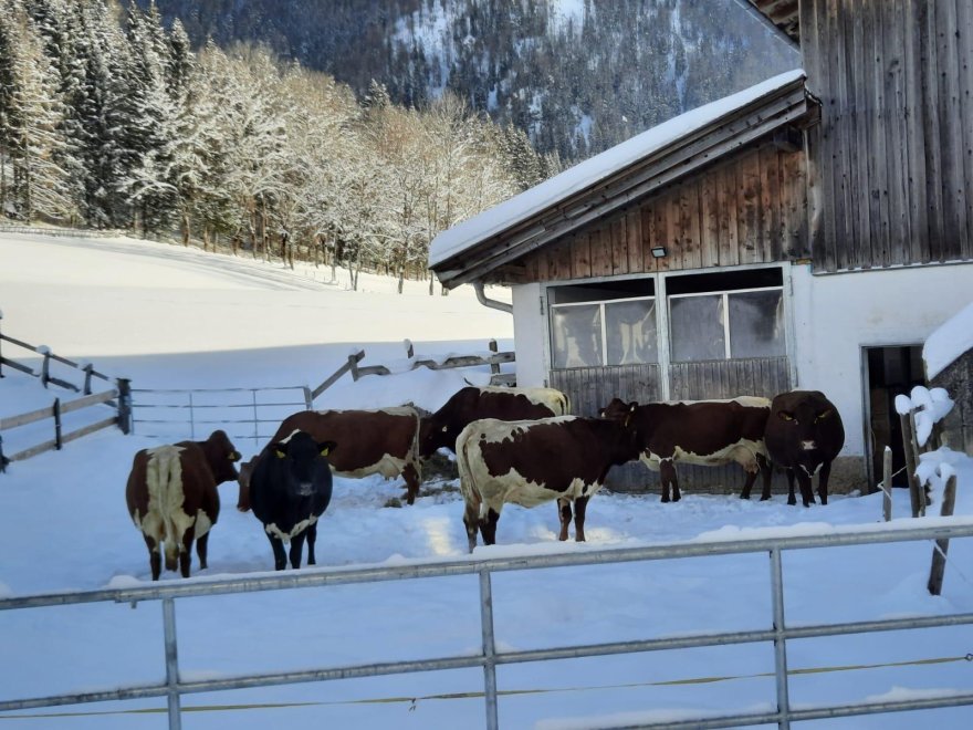 Sie werden bei uns mit hofeigenen Produkten (Marmelade, Milch, Speck, Fleisch, Wurst, Kräutern, Salat..) verwöhnt. Im Sommer können Sie die hauseigene Alm auf der Steinplatte erwandern.
