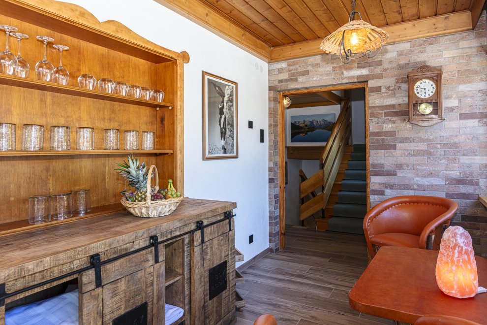 Die Wohnungen sind gut ausgestattet: Balkon mit UV Sonnenschirm, Bergblick, Badezimmer mit begehbarer Regendusche, voll ausgestattete Küchenzeile, Wohnbereich mit Smart-TV und öffentlichen Kabel Streaming, gemütliches Sofa und WLAN. Ganzjährig verfügbar, zentral gelegen und ohne Bergfahrt erreichbar.