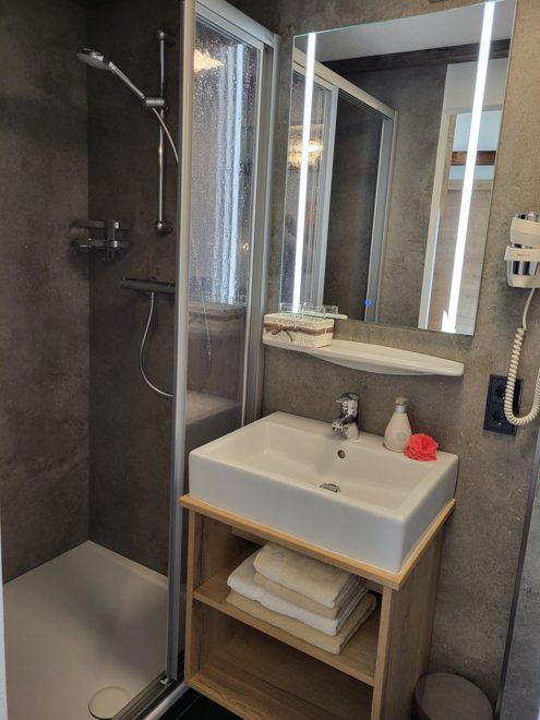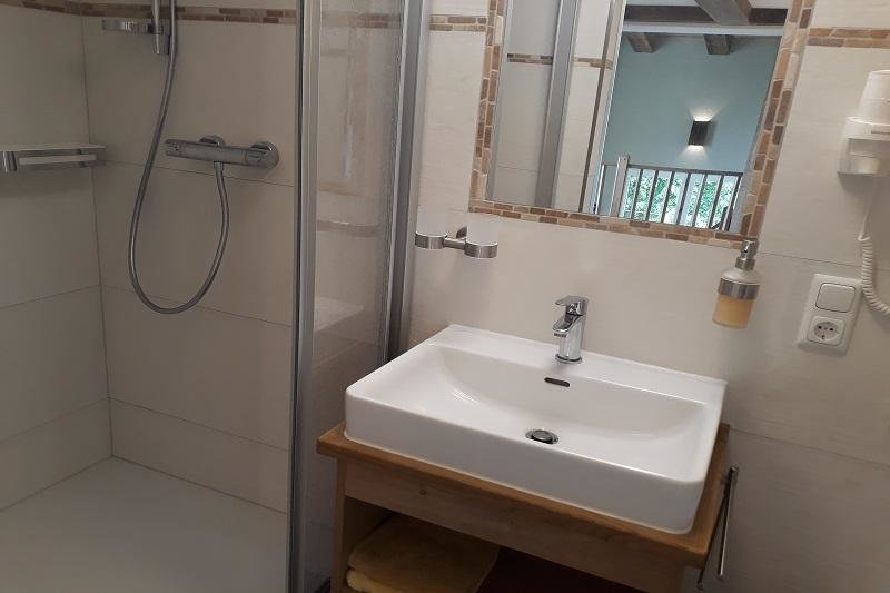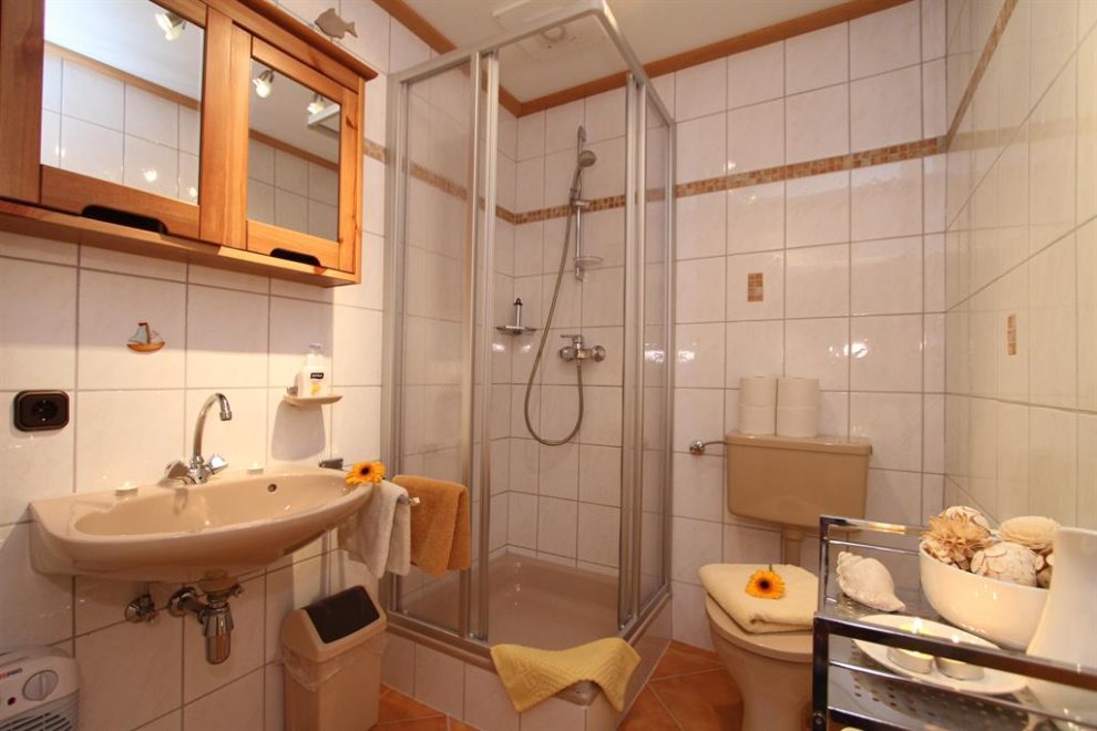 Dusche, WC, Waschtisch