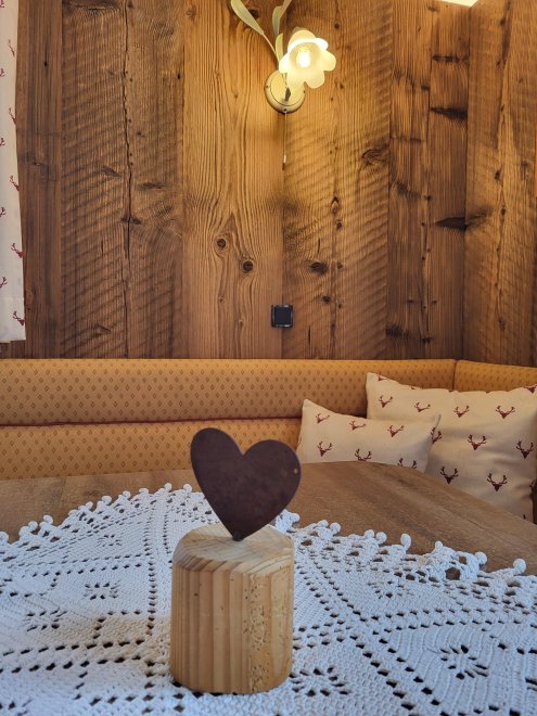 Komfortabel und gemütlich eingerichtet, tw. mit Kachelofen, Wintergarten, Zirbenholzmöbeln und Balkon bzw. Terrasse. Gerne bringen wir Ihnen frische Brötchen vom Bäcker zum Frühstück.