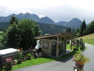 Unser neu angelegter Bachlauf mit Bachdusche u. die Aussichtsterrasse mit Schaukelliege wird Sie begeistern, weiters unser Saunahäuschen, die Gartenlaube mit Grillkamin sowie ein kleiner Kräutergarten verschönern Ihren Urlaub.