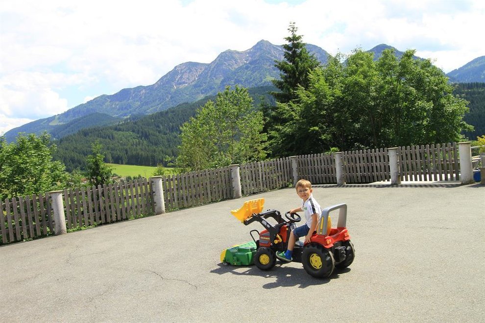 Unsere süßen Kleintiere, wie Ziegen, Katzen, Kaninchen und unsere brave Hofhündin "Ella" freuen sich immer über Streicheleinheiten. Kinder haben viel Raum zum Spielen, Spielplatz mit Flying-Fox, Trampolin, Tischfußball, Tischtennis, Basketballkorb sowie Kinderfuhrpark am Hof
