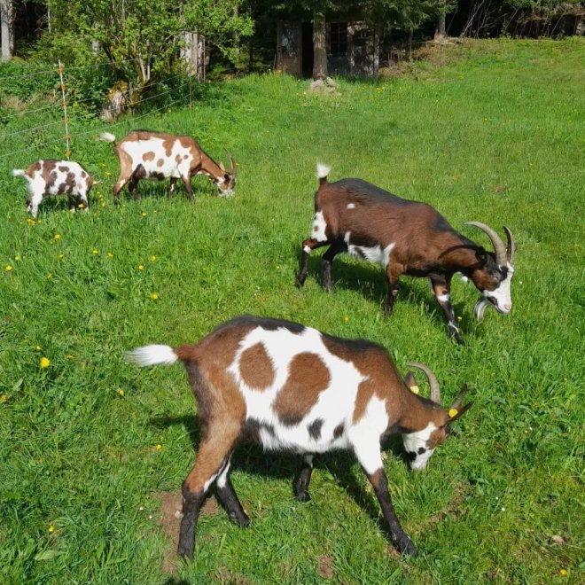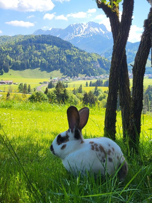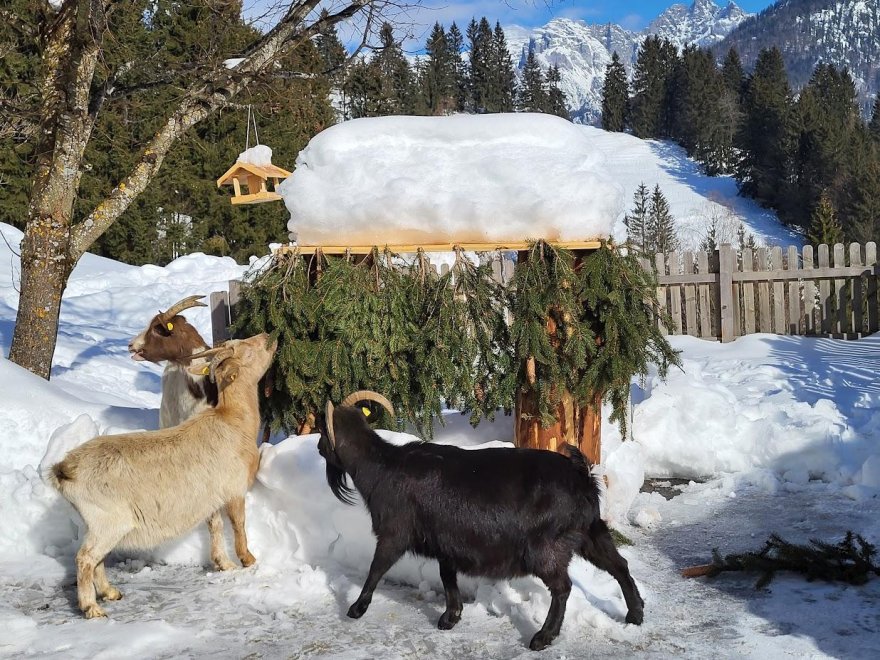 Auch unsere tierischen Mitbewohner – Ziegen, Katzen, Kaninchen und unsere brave Hofhündin „Ella“ – freuen sich immer auf Streicheleinheiten.