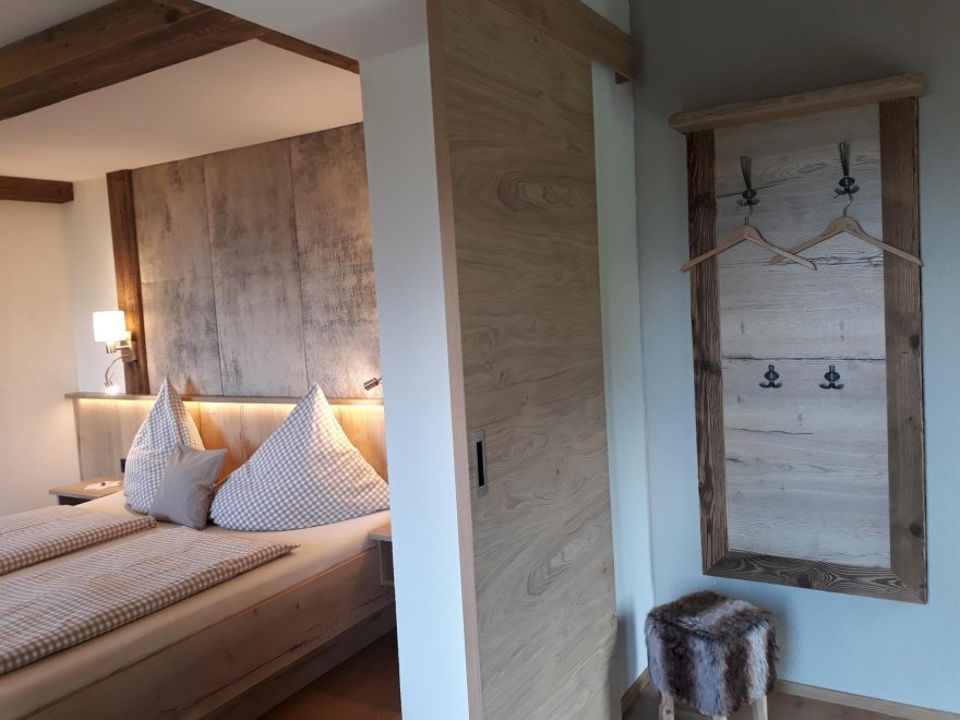 Unsere liebevoll eingerichteten Wohnungen verfügen alle über Balkon oder Terrasse sowie voll ausgestattete Küchen. Das besondere sind die hochwertigen Vollholz- und Zirbenholzmöbel gefertigt in der hofeigenen, kleinen Tischlerei – von Hausherrn Peter. Die Wohnung „Heublume“ verwöhnt zusätzlich mit einem traditionellen Kachelofen, ebenso wie unsere Chaletwohnung „Almrose“, die außerdem mit einem eigenen Wintergarten begeistert.