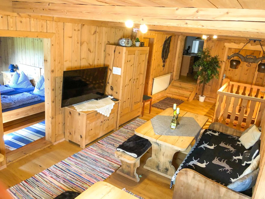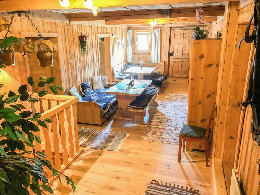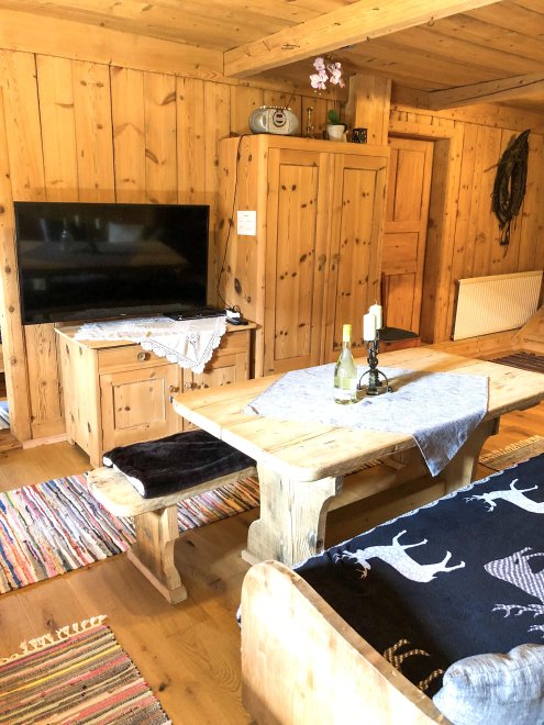 Die Wohnung besteht nahezu komplett aus Altholz, trotz der Renovierung 2010 behielt die Wohnung zu hundert Prozent ihren originalen Tiroler-Stil.