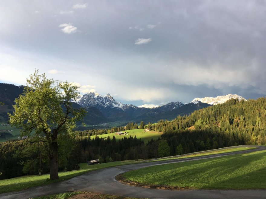 Grandiose Ausblicke auf das Kitzbüheler Horn, Wilder Kaiser, Loferer & Leoganger Steinberge. Skizirkus Fieberbrunn/Saalbach 15 Minuten entfernt. Ideal zum Wandern, Entspannen, Skitouren und Mountainbiken. Gemütliche helle Wohnung mit grandiosen Blicken auf die Berge und direktem Zugang zum Garten. Grillmöglichkeit im Garten. Großzügige Wohnküche, Bad mit Dusche und Badewanne. 2 Schlafzimmer. Keller mit Skiständer. Fussbodenheizung. Wir haben ganz bewusst keinen Fernseher in der Wohnung - geniesst die Ruhe und die schöne Aussicht! Wir verzichten ausserdem auf eine Kapsel-Kaffeemaschine um Müll zu vermeiden. Es gibt eine French Press und eine italienische Espresso Maschine und auch sonst ist die Küche voll ausgestattet.