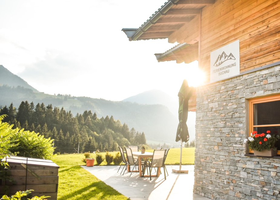 Die 85m² geräumige „Ferienwohnung Buchau“, liegt in sonniger, ruhiger Lage, inmitten der Fieberbrunner Berg- und Erlebniswelt.