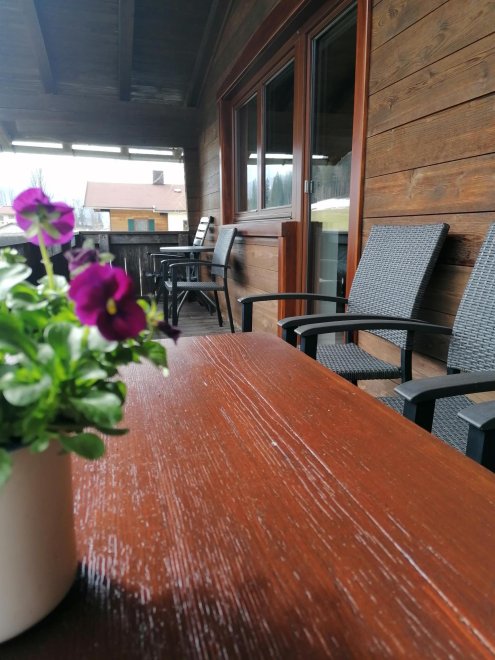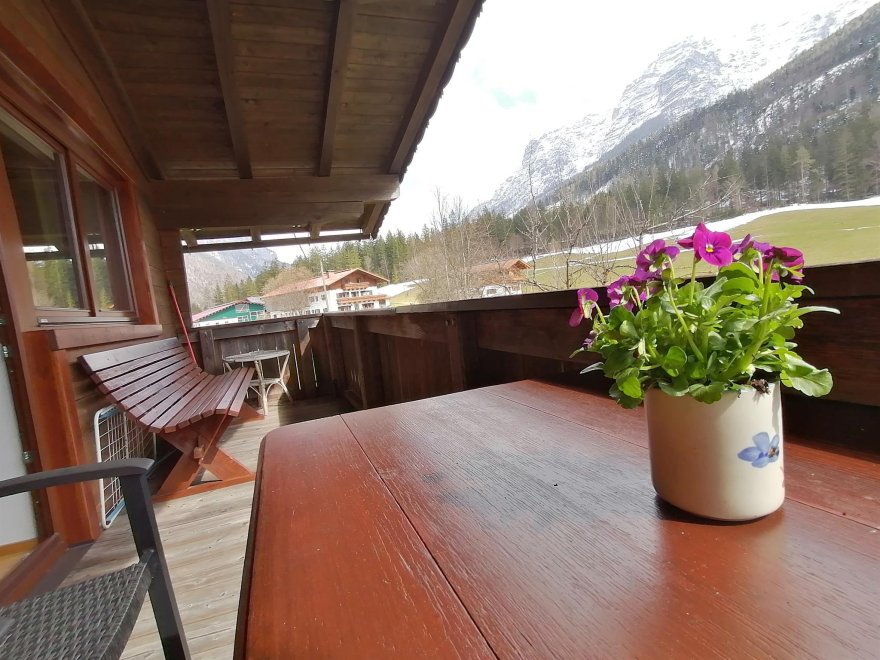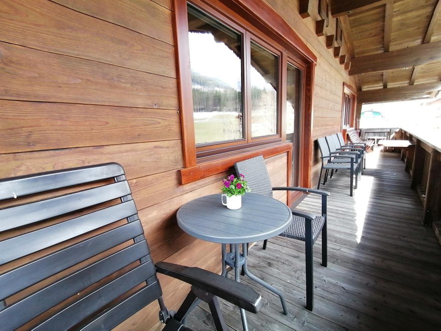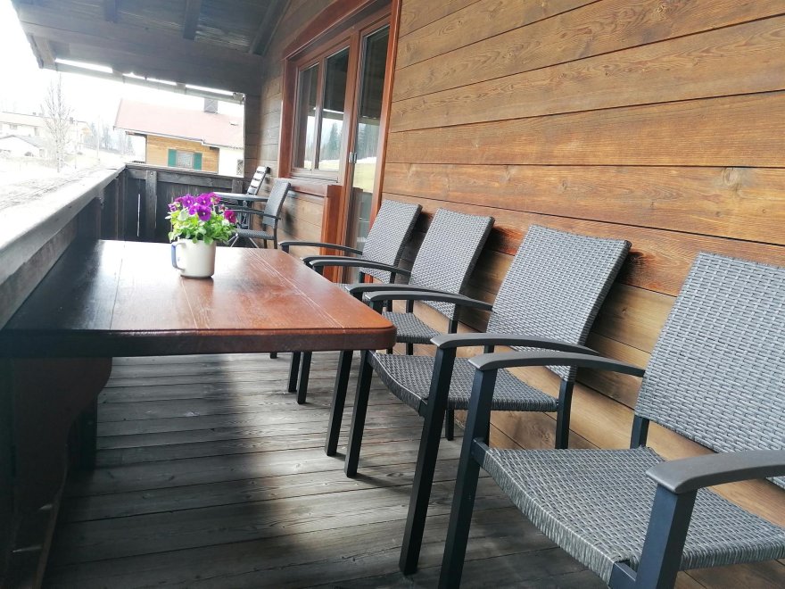 Vom großen, abgeschlossenen Balkon können Sie die Natur und den Blick in die nahen Berge in vollen Zügen genießen. Genuß und Erholung pur!
