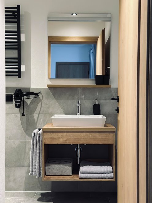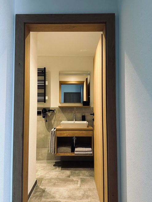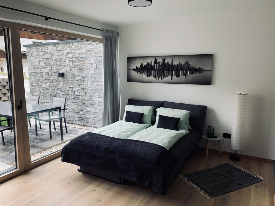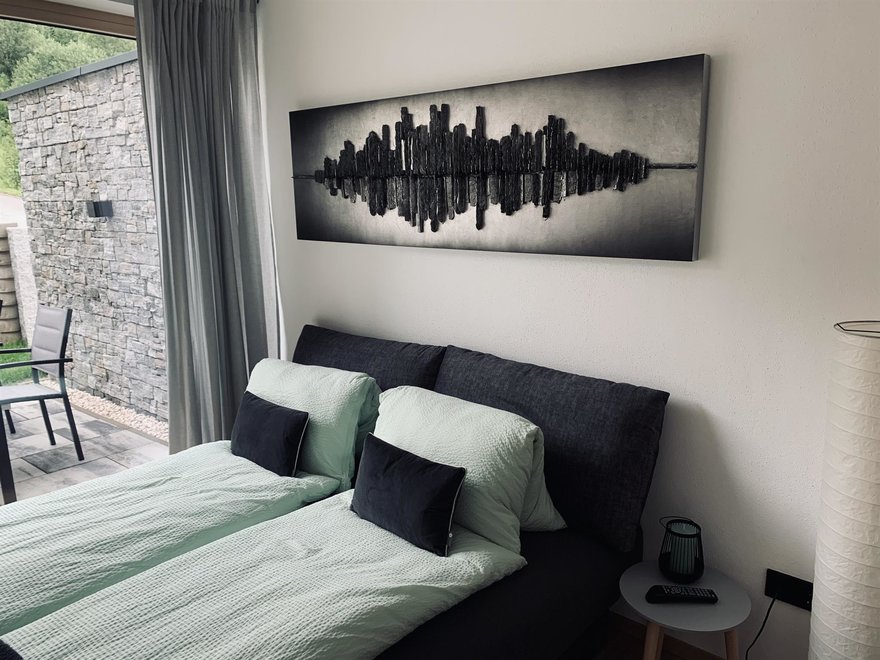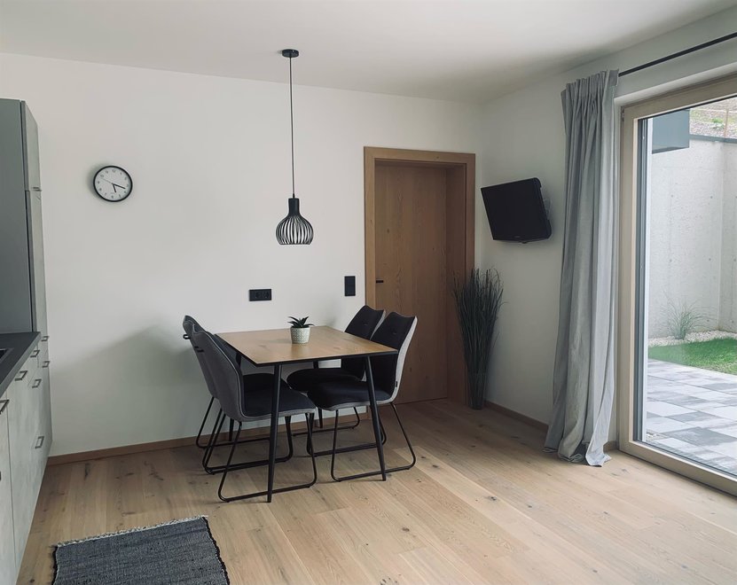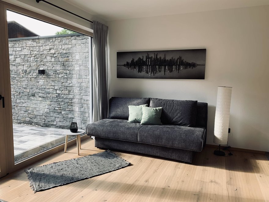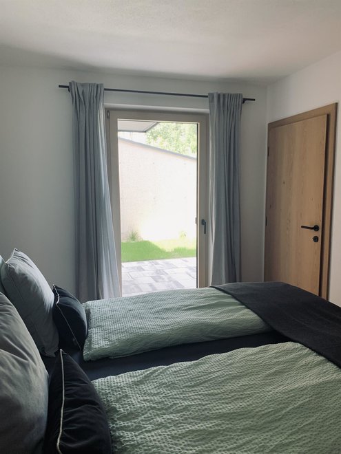 Unser im Jahr 2020 neu erbautes Einfamilienhaus befindet sich in ruhiger und sonniger Lage. Genießen Sie Ihre freien Tage in unserer 40m2 Ferienwohnung mit separaten Eingang. Diese befindet sich im Erdgeschoss und beinhaltet eine hochwertige und modern eingerichtete Wohnküche mit Schlafcouch, sowie einem Schlafzimmer und Dusche mit WC. Die 25m2 möblierte Terrasse ladet für erholsame Stunden ein. Wir freuen uns auf Ihren Besuch!