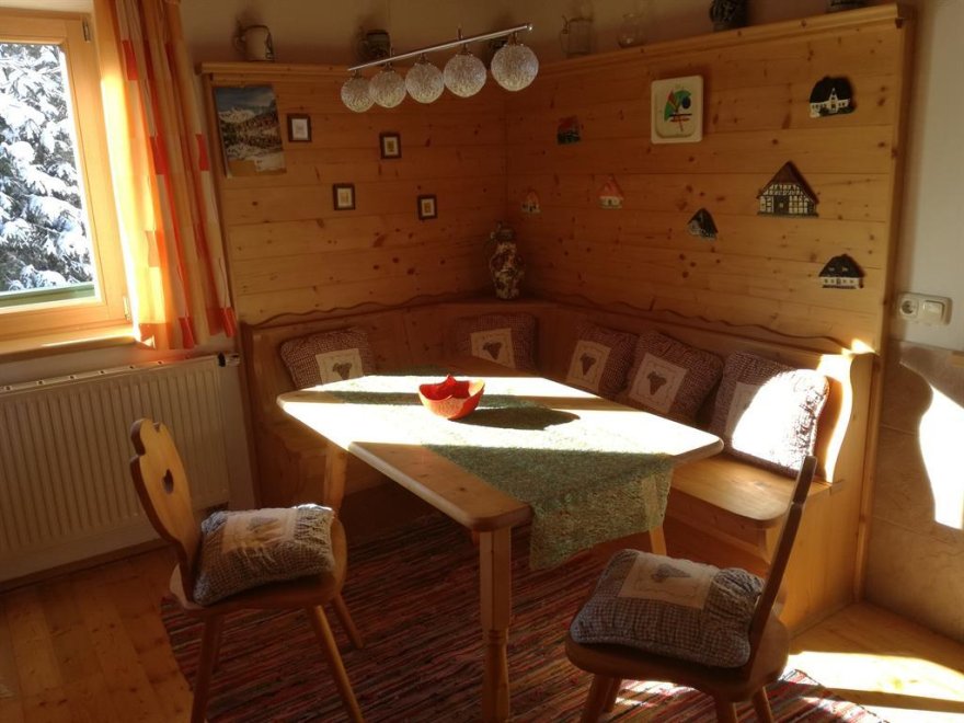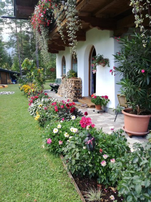 Das im Tiroler Stil gebaute Haus liegt in ruhiger, sonniger Lage mit Blick auf die Loferer Steinberge.