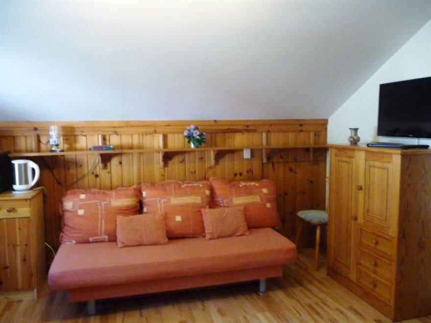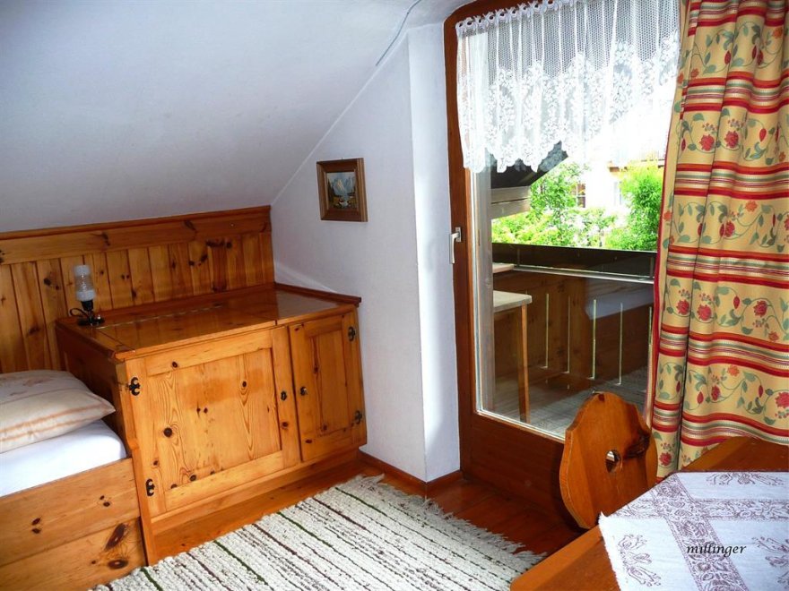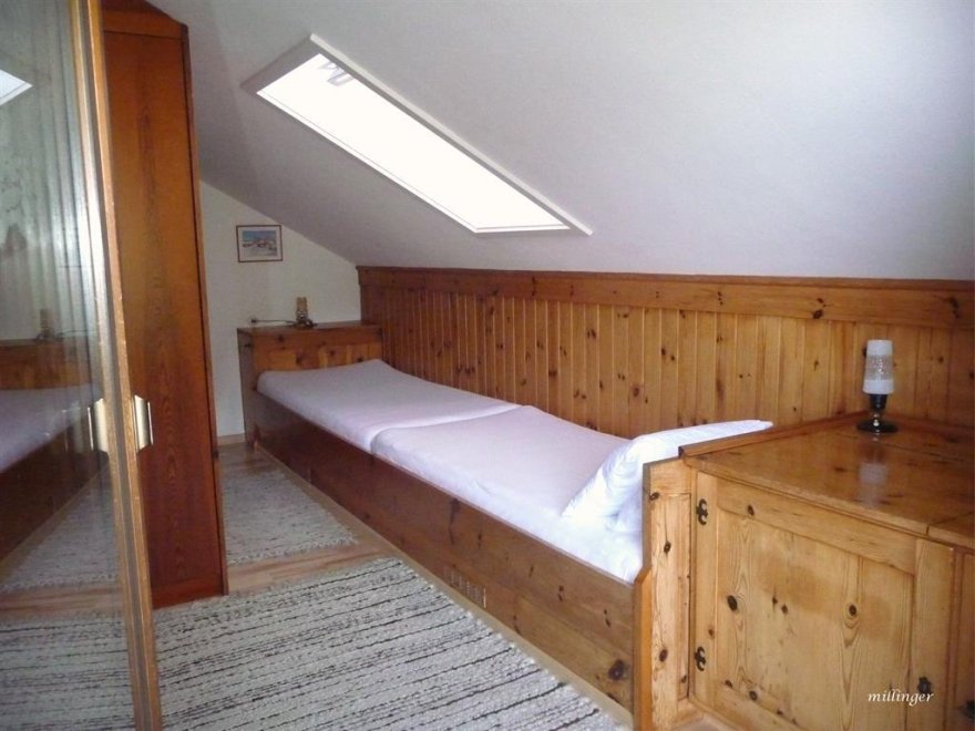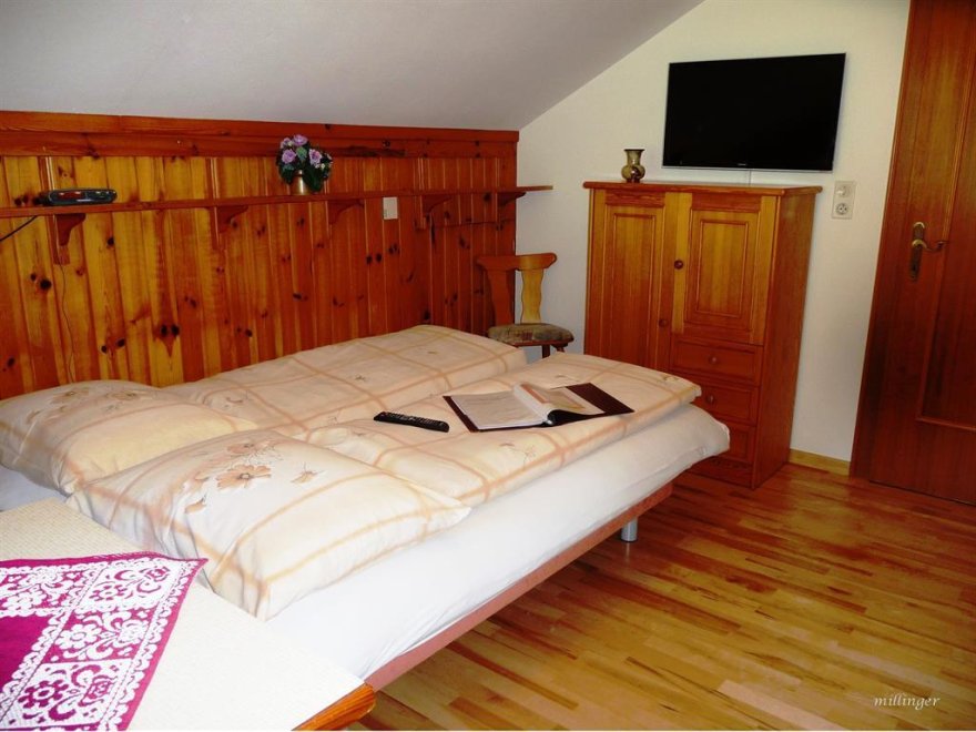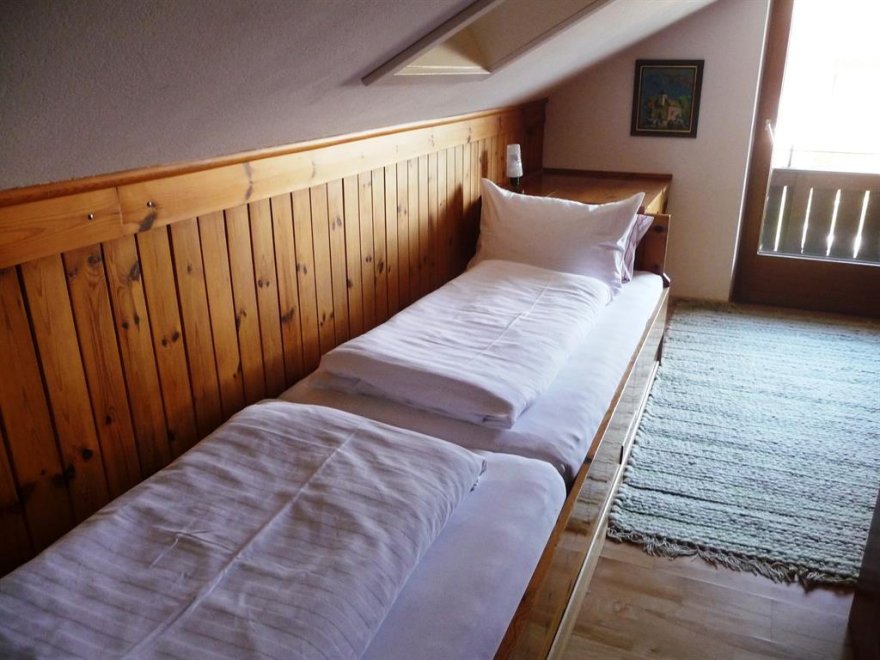 Im Schlafzimmer sind die Betten hintereinander. Noch eine separate Toilette ist nebenan. Sollte die Familie oder Gruppe größer sein - können wir Ihnen noch unser "Kammerl" für 1-2 Personen anbieten. Babybett vorhanden. WLAN kostenlosGemütliche 36m² Wohnung für bis zu 4 Personen - mit 1 Schlafzimmer, 1 Wohnschlafzimmer (ausziehbare Couch für 2 Pers.) im 2ten Stock. Kitchenette, Geschirr + Besteck, Microwelle, Kühlschrank, DU/WC, Kabel-TV, großer Balkon. Im Schlafzimmer sind die Betten hintereinander (90x190). Dachschräge. Sollte die Familie oder Gruppe größer sein - können wir Ihnen noch unser "Kammerl" für 1-2 Personen anbieten. Es gibt noch eine zweite Toilette... Noch eine separate Toilette ist nebenan. WLAN