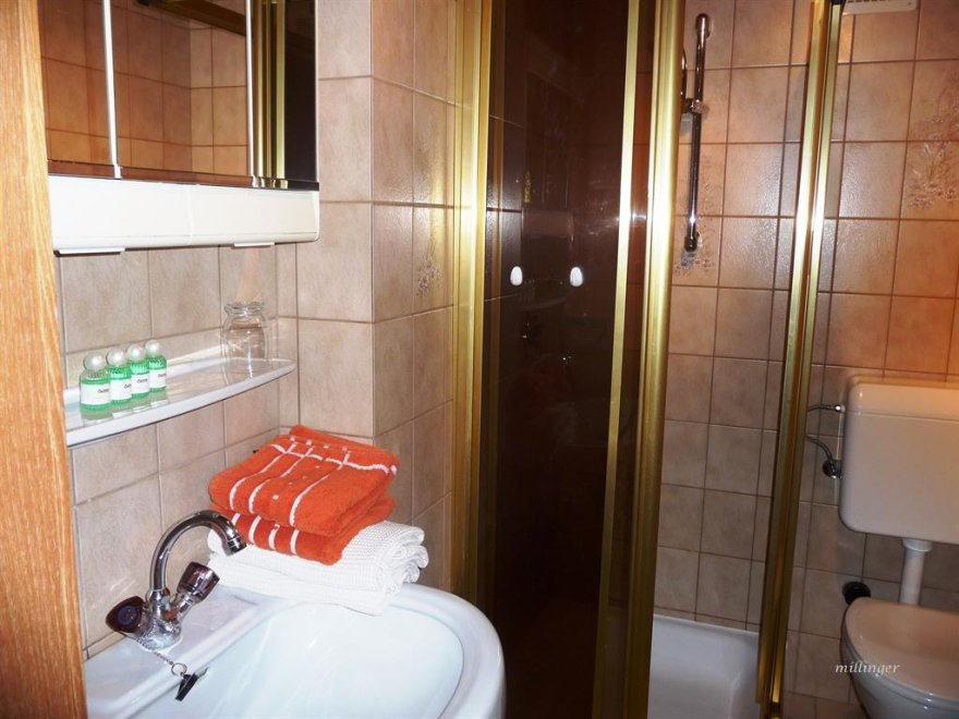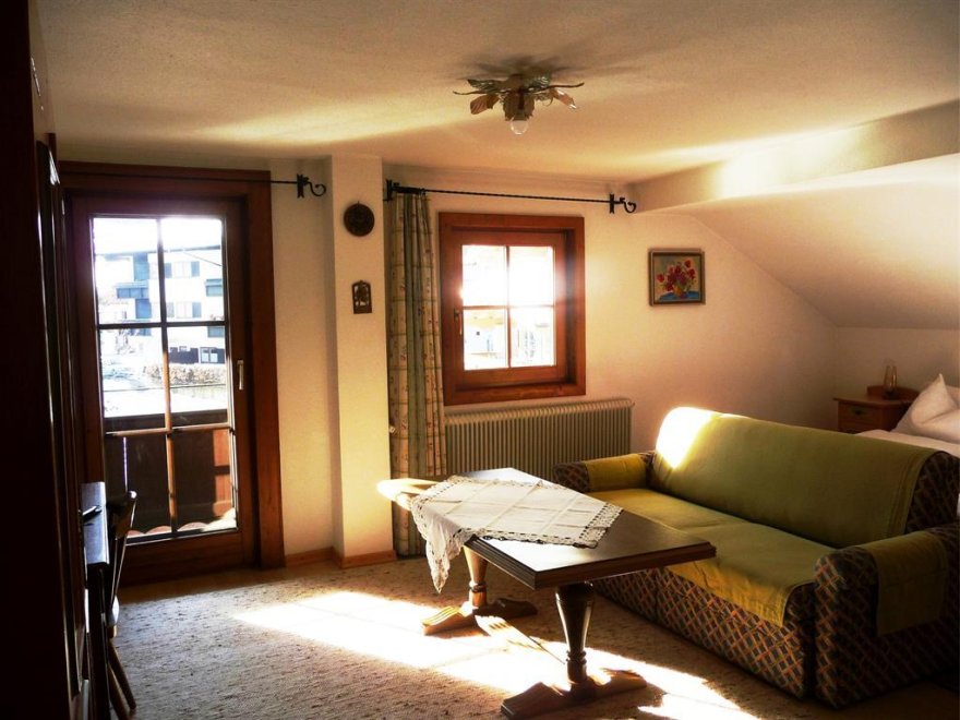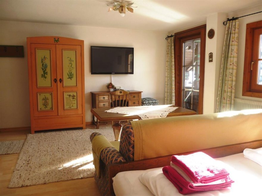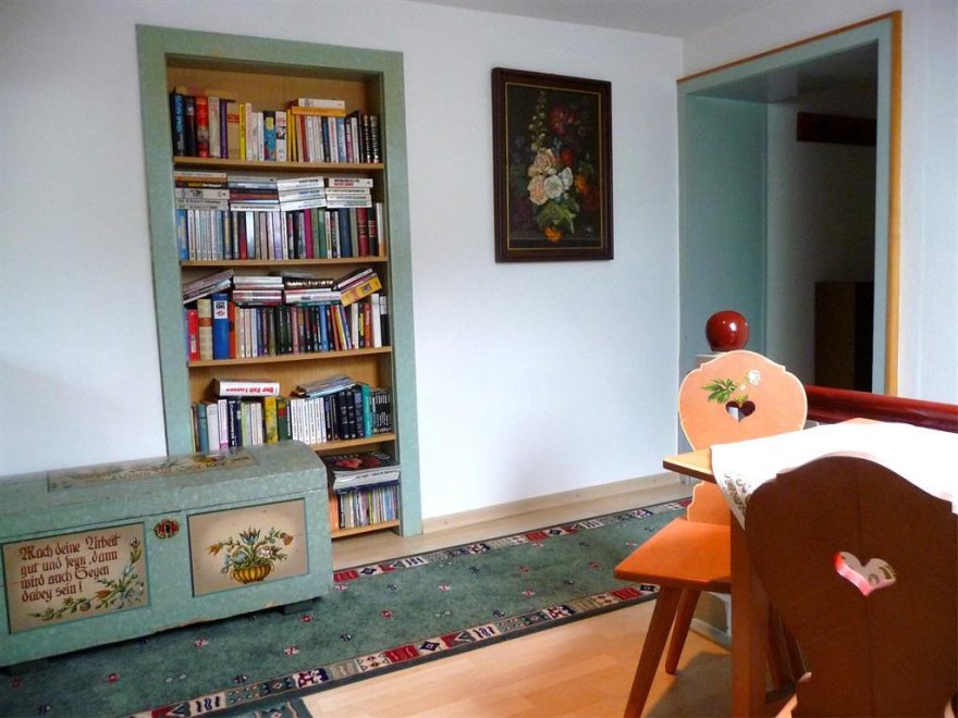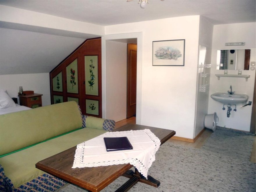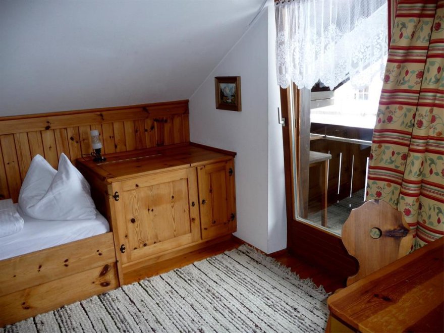Im Schlafzimmer sind die Betten hintereinander. Noch eine separate Toilette ist nebenan. Sollte die Familie oder Gruppe größer sein - können wir Ihnen noch unser "Kammerl" für 1-2 Personen anbieten. Babybett vorhanden. WLAN kostenlosGemütliche 36m² Wohnung für bis zu 4 Personen - mit 1 Schlafzimmer, 1 Wohnschlafzimmer (ausziehbare Couch für 2 Pers.) im 2ten Stock. Kitchenette, Geschirr + Besteck, Microwelle, Kühlschrank, DU/WC, Kabel-TV, großer Balkon. Im Schlafzimmer sind die Betten hintereinander (90x190). Dachschräge. Sollte die Familie oder Gruppe größer sein - können wir Ihnen noch unser "Kammerl" für 1-2 Personen anbieten. Es gibt noch eine zweite Toilette... Noch eine separate Toilette ist nebenan. WLAN