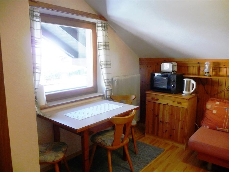 Liebevoll und gemütlich eingerichtetes 40qm - Zweiraumapartment mit Kitchenette, Microwelle, Minibackofen, Wasserkocher, Toaster, und allen nötigen Utensilien, Dusche/WC, TV, Radio, Balkon mit Blick zum Hausberg. Bis 3 Personen