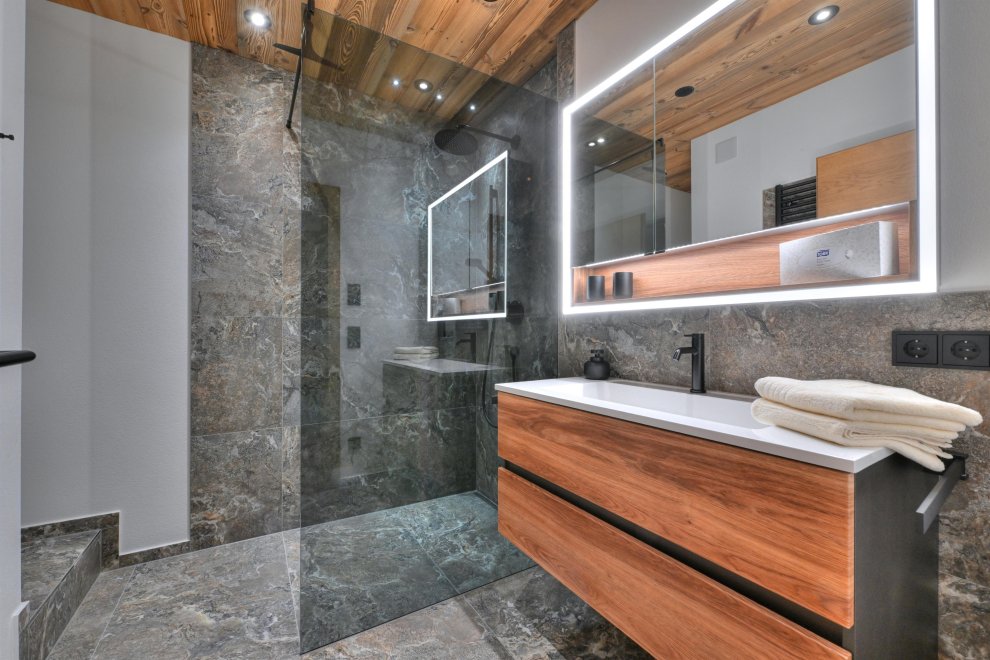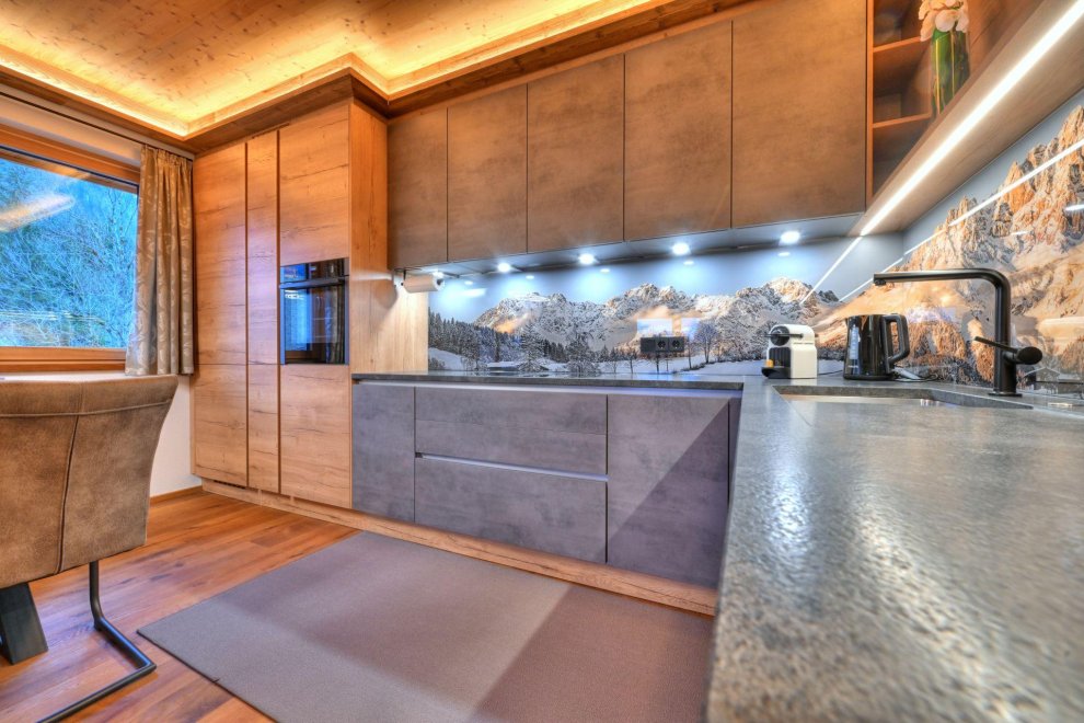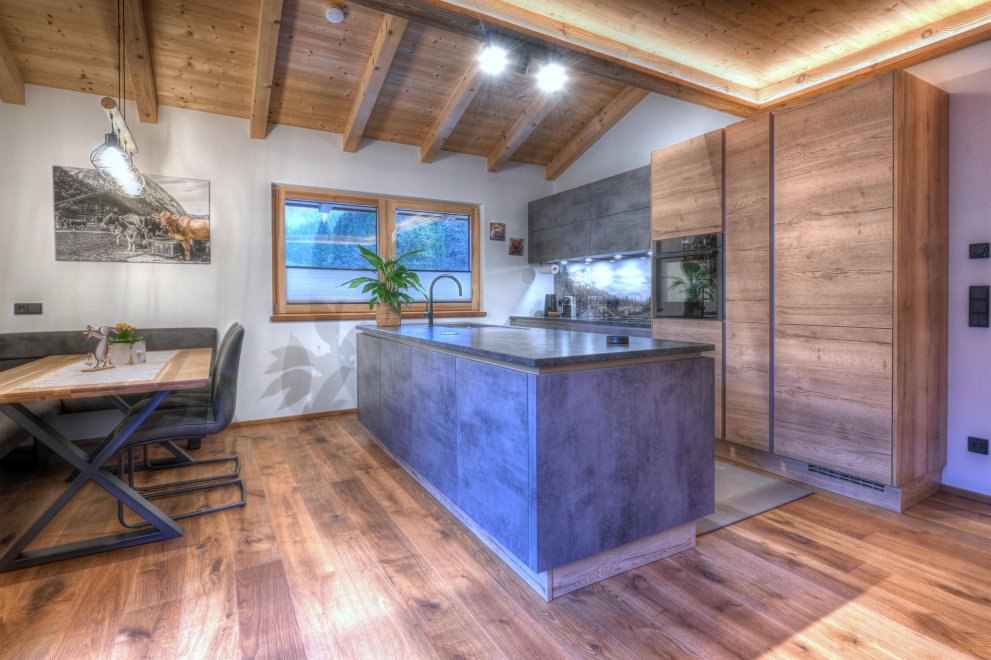 Unsere modern eingerichtete Ferienwohnung „Steinplatte“ im 1. Stock bietet auf ca. 78 m² Platz für 4 Personen. Die Wohnung überzeugt mit hochwertigen Parkettböden (komplett teppichfrei), zwei gemütlichen Schlafzimmern mit jeweils einem Doppelbett ausgestattet, einem großzügigen Badezimmer mit bodengleicher Dusche sowie einem separaten WC. In der voll ausgestatteten Küche mit Küchenblock finden Sie alles, was Sie für einen entspannten Kochabend benötigen - inklusive Kaffeemaschine, Kochutensilien und Geschirr. Der Wohnbereich lädt mit einer gemütlichen Couch zum Entspannen ein - auf Wunsch kann diese auch als zusätzliche Schlafgelegenheit für eine 5. Person genutzt werden. Die eigene Terrasse mit Blick auf die Steinplatte bietet gemütliche Sitzmöbel - ideal für ein sonniges Frühstück oder einen entspannten Abend mit Blick auf die Berge. SAT-TV, kostenloses WLAN sowie Lärmschutzfenster für erholsame Ruhe sind selbstverständlich.