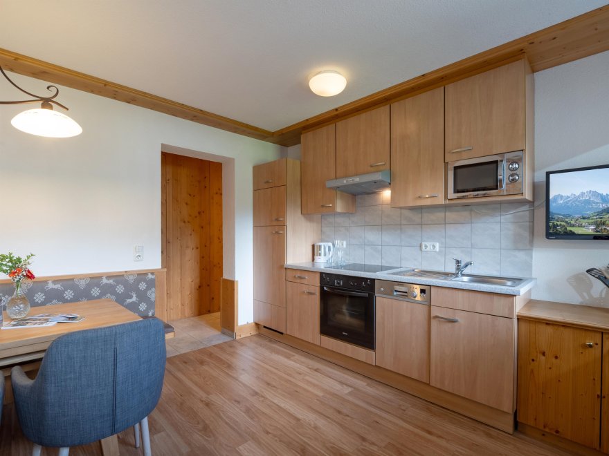 Unsere Wohnung LUFT ist ideal für 2 Personen. Vom Wohnzimmer und dem kleinen Balkon haben Sie einen unglaublichen Blick auf die Fieberbrunner Bergwelt. In der kleinen Küchenzeile bereiten Sie Ihr Frühstück für einen ereignisreichen oder erholsamen Tag zu. Das Schlafzimmer bietet ein kuscheliges Doppelbett mit feinsten Matratzen und das nebenan liegende Badezimmer ist mit Dusche, Waschtisch und WC ausgestattet. Eine kleine heimelige Wohnung, in der Sie Ihren Urlaub, so richtig genießen können.