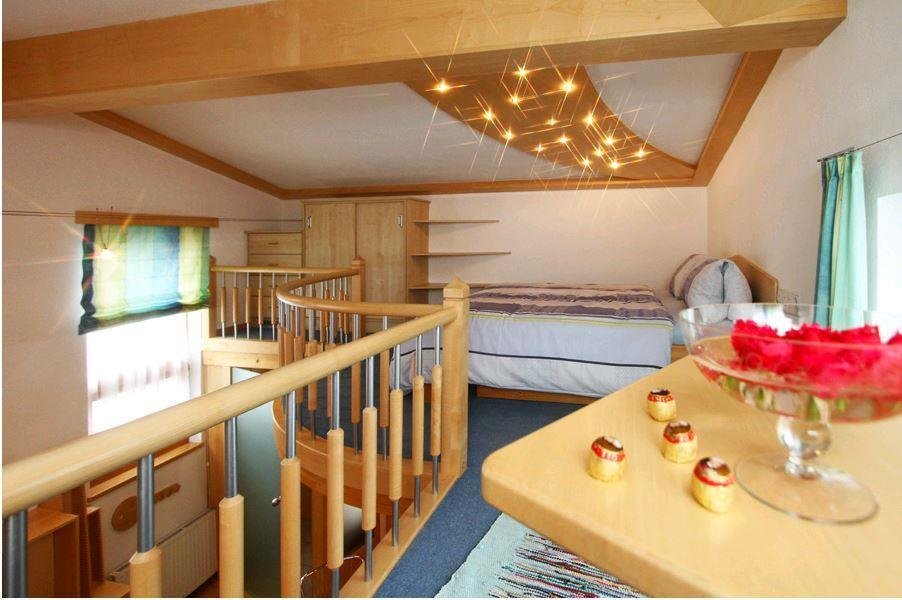 Das Ferienhaus eignet sich für 2 bis 3 Personen. Der offene Wohnbereich ist mit einer gut ausgestatteten Küche, Tisch mit Stühlen,Sitzcouch und TV ausgestattet. In der Galerie überzeugt der Schlafbereich mit einem Doppelbett und einem traumhaft schönen Sternenhimmel.
