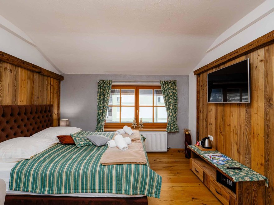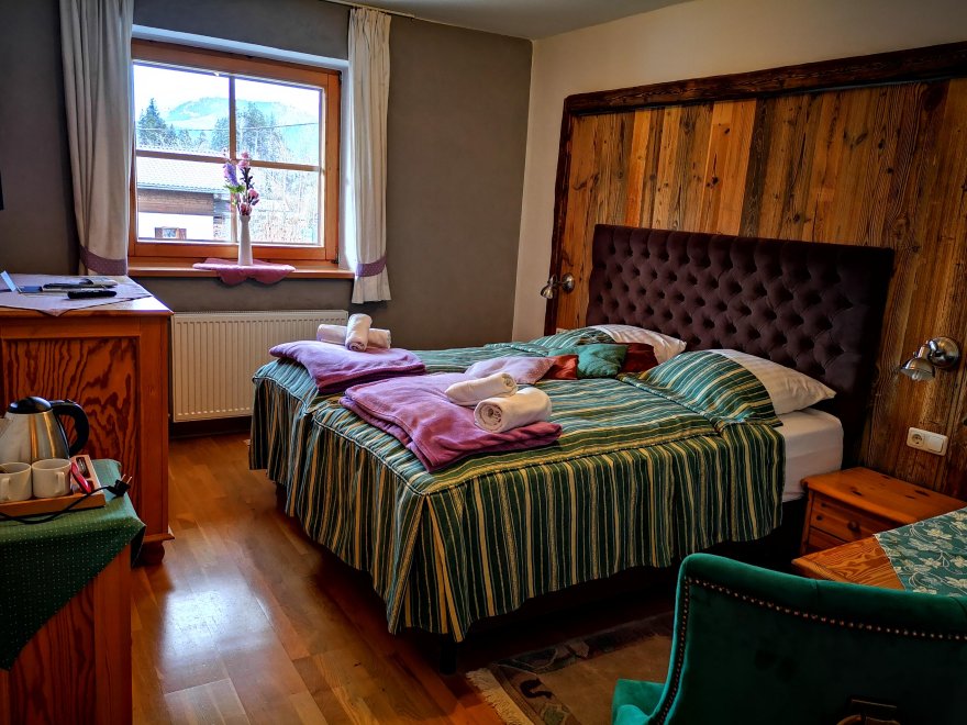 Gemütliches Gasthaus in der Nähe des Ortszentrum von Fieberbrunn. Alle ***Zimmer sind komfortabel eingerichtet (Bäder, WC, TV, Haartrockner). Unser Restaurant und die urigen Gaststuben laden zum Verweilen ein. Im Rahmen der Halbpension verwöhnt man mit einem reichhaltigen Frühstücksbuffet, sowie 3-Gang-Wahlmenü mit Salatbuffet am Abend. Die bekannt gute Küche bietet Ihnen internationale Speisen aber auch Köstlichkeiten der Tiroler Küche. Für die kleinsten Gäste gibt es eine Kinderspielecke mit Fußballspiel, Ballbecken; für die Älteren: kostenloses Billard. Der WLAN-Zugang ist auch kostenfrei. In unmittelbarer Nähe befindet sich das Aubad (Hallenbad, Freibad, Saunadorf ), kostenlos für unsere Gäste.
