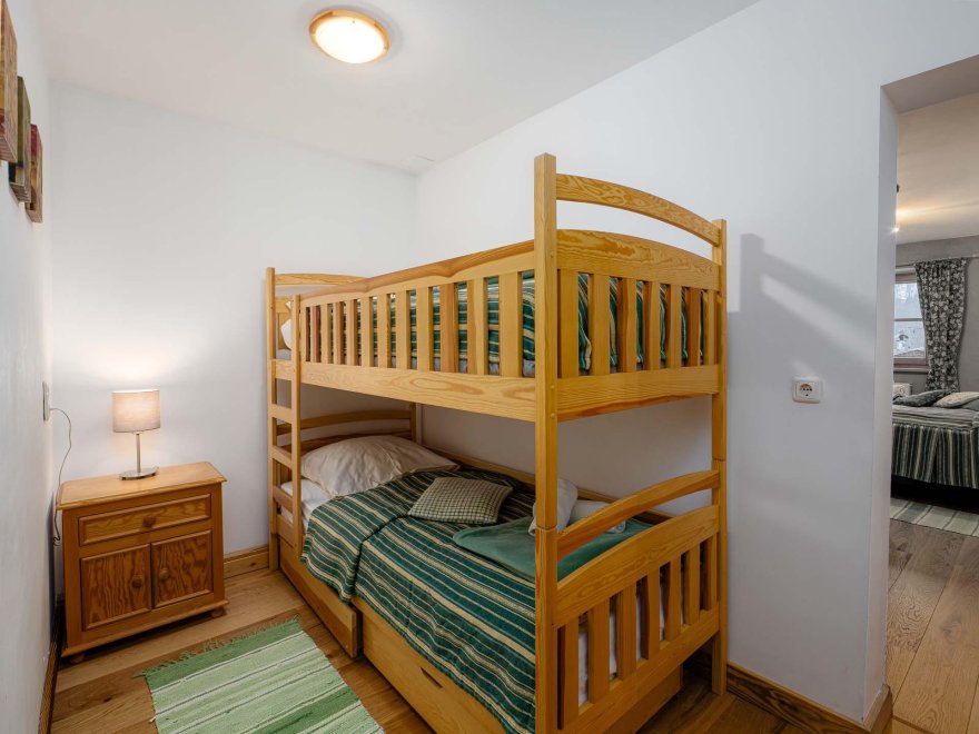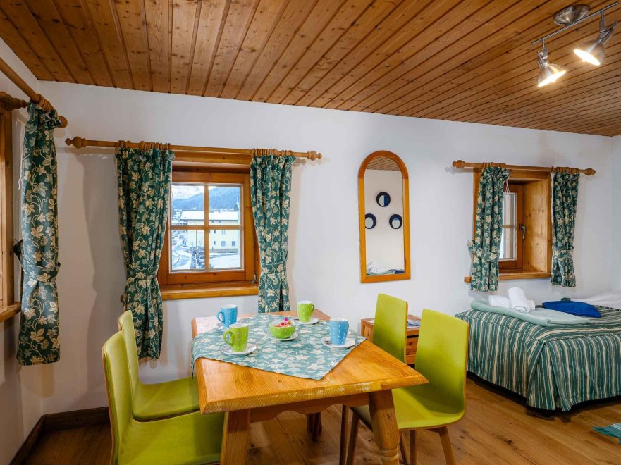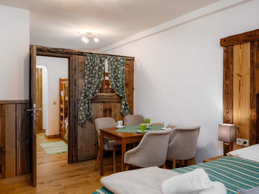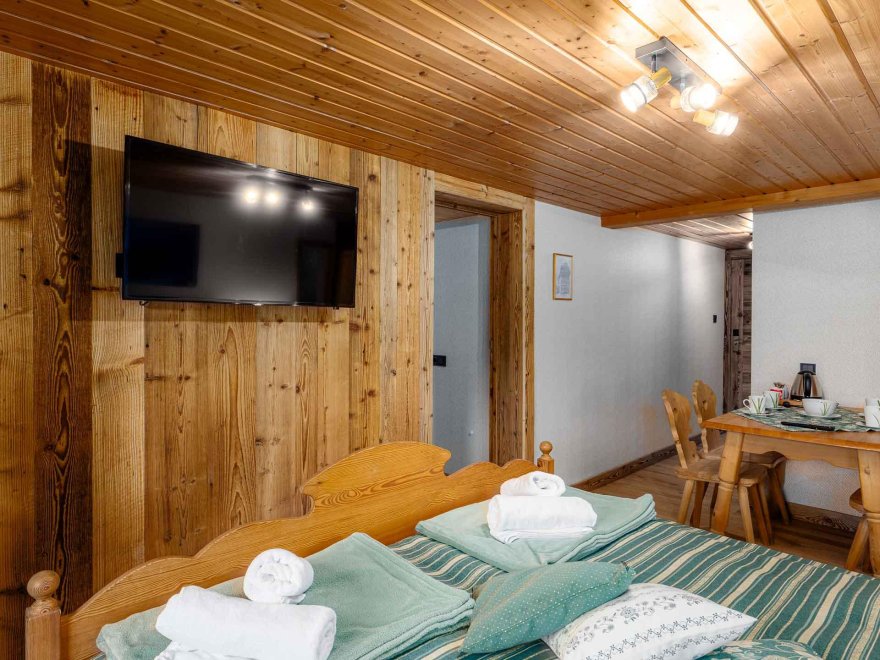 Doppelbett, Stockbett, Bad mit Dusche/WC, Kabel-TV, Tisch und Stühle, Internetanschluss (W-LAN).