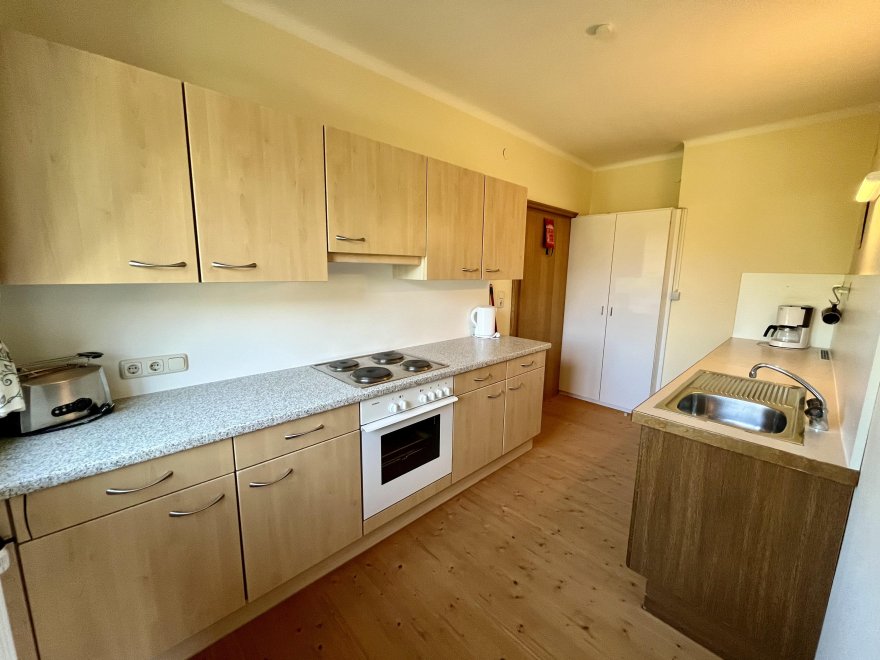 Schöne Ferienwohnung in der ersten Etage eines Einfamilienhauses in ruhiger, zentraler Lage. Sie erwartet ein geräumiges Appartement mit gemütlicher Tiroler Stube, einer Küche, einem Schlafzimmer mit einem kleinen Badezimmer. Für die dritte Person ist Bettzeug am Sofa des Wohnzimmers vorbereitet.