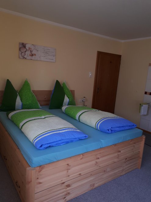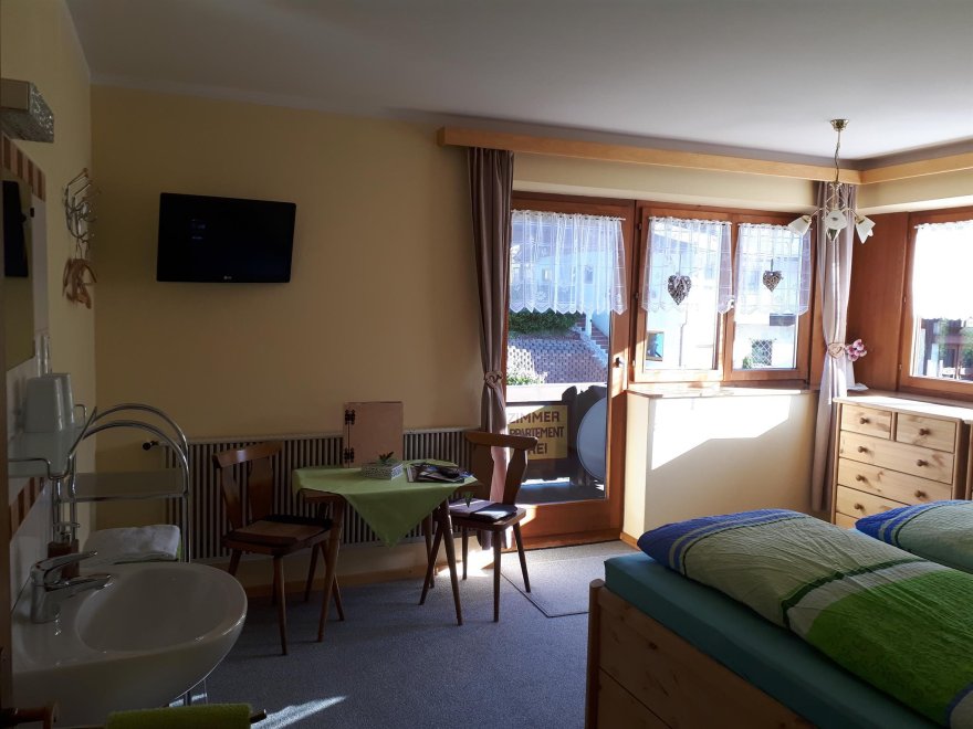 Ein Doppelzimmer mit gr. Balkon und einem Fernseher , mit eigener DU/WC am Flur. Kann auch zur Ferienwohnung dazu gemietet werden. Im Doppelzimmer so wie im 1Bettzimmer ist ein Waschbecken. Ich bitte Sie höflich nur am Balkon zu rauchen. Bis zum Freibad ca. 10 Gehminuten, bis zum Hausberglift 3 Gehminuten u zur Gondel ca 5 Gehminuten. In der Nähe sind auch Langlaufloipen und auch Bushaltestellen.