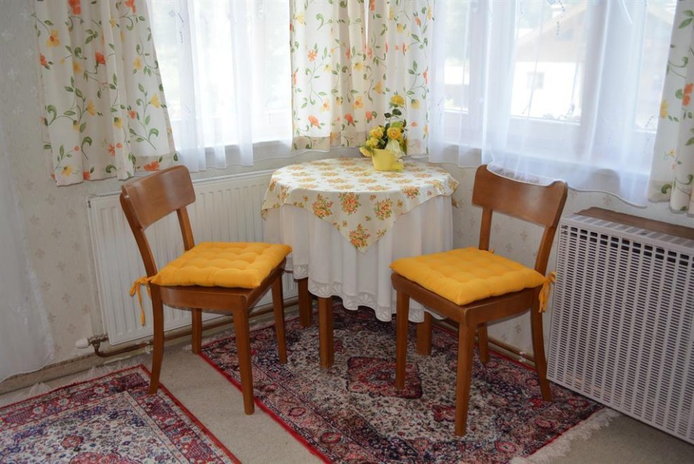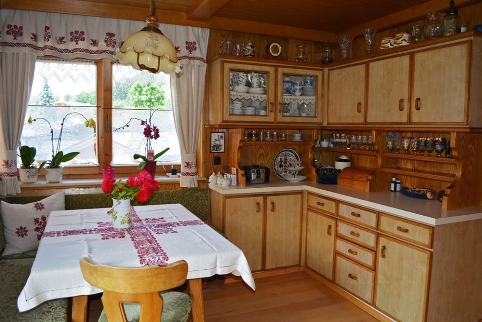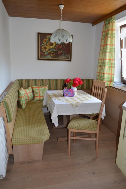 Neu gestaltet Ferienwohnung mit einem Schlafzimmer mit Doppelbett, Dusche/WC, Wohnküche mit großer Essecke und Schlafcouch, Vorraum, Balkon, Sat-TV, 90 m². Ruhige Lage, direkt neben der Langlaufloipe.