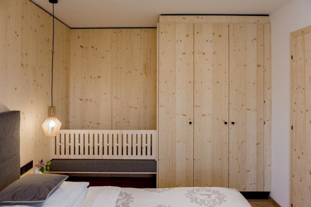 2 Doppelzimmer,1 davon mit TV, Esszimmer mit Essplatz, Küche, Dusche, Wc separat, Kabel-TV, Balkon, modern mit viel Holz möbliert, 52 m² Wohnfläche, kleiner Flur mit Garderobe