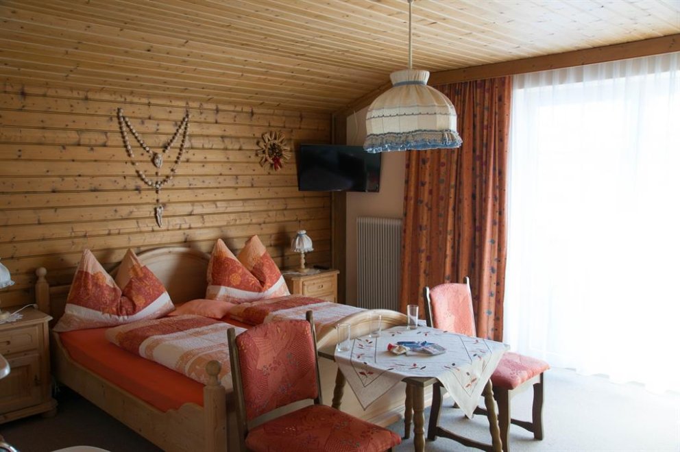 Zimmer mit Doppelbett und Zustellbett, Radio, Kabel-TV, Balkon, Tisch, Stühle, fl. Kalt- und Warmwasser, Wasserkocher, Dusche u. WC auf Etage.