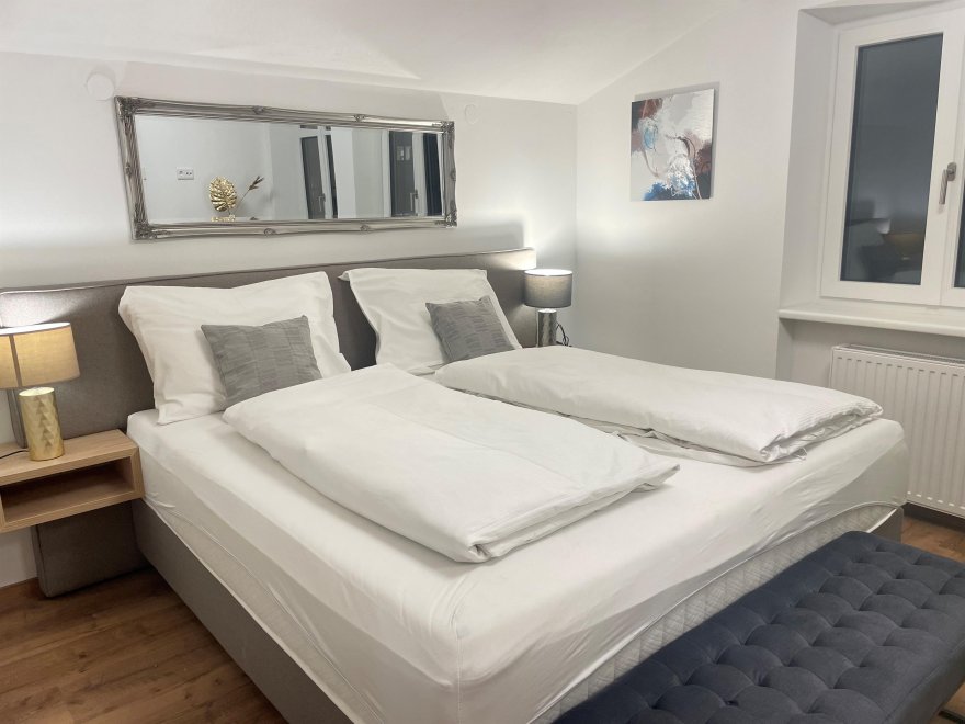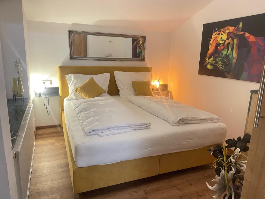 Das Apartment bietet zudem zwei separate Schlafzimmer mit komfortablen Boxspringbetten, die eine erholsame Nachtruhe garantieren. Das Badezimmer ist modern und stilvoll gestaltet und verfügt über alle Annehmlichkeiten, die Sie benötigen. Zusätzlich gibt es ein separates WC für noch mehr Komfort und Privatsphäre. Das Apartment wurde top renoviert und mit viel Liebe zum Detail eingerichtet, um Ihnen einen angenehmen Aufenthalt zu ermöglichen. Hier können Sie sich nach einem langen Tag voller Aktivitäten entspannen und erholen.