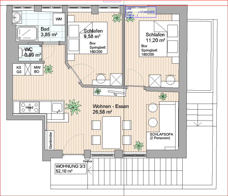 Größe 52 m² Belegung 1 - 6 Erwachsene , 0 - 5 Kinder Zimmer 4 Schlafzimmer 2 Zimmerdetails