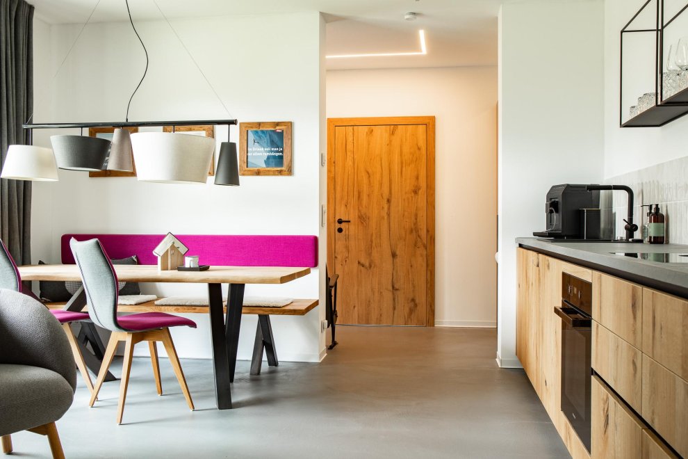 Ein besonderer Fokus wurde beim Bau und der Einrichtung auf Nachhaltigkeit gelegt. Die Ausstattung wurde - wo möglich - von regionalen Firmen bezogen, die sich ebenfalls um eine nachhaltige Produktion verpflichten. Zudem werden mit Geothermie und Solarenergie erneuerbare Energien genutzt, um den ökologischen Fußabdruck zu minimieren. Ihr könnt also euren Urlaub in vollen Zügen genießen, ohne dabei die Umwelt unnötig zu belasten.