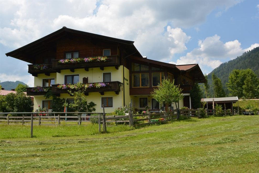 Familiäre Atmosphäre in einer gastlichen Pension in ruhiger und zentraler Lage (ca.10 Gehminuten ins Ortzentrum), 10 Betten/5 Zimmer. Schibushaltestelle 100 m, Schwimmbad und Badesee sowie Supermarkt 300 m entfernt, Langlaufloipe direkt am Haus.