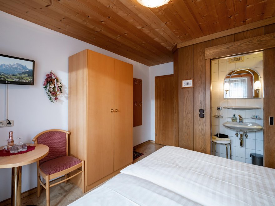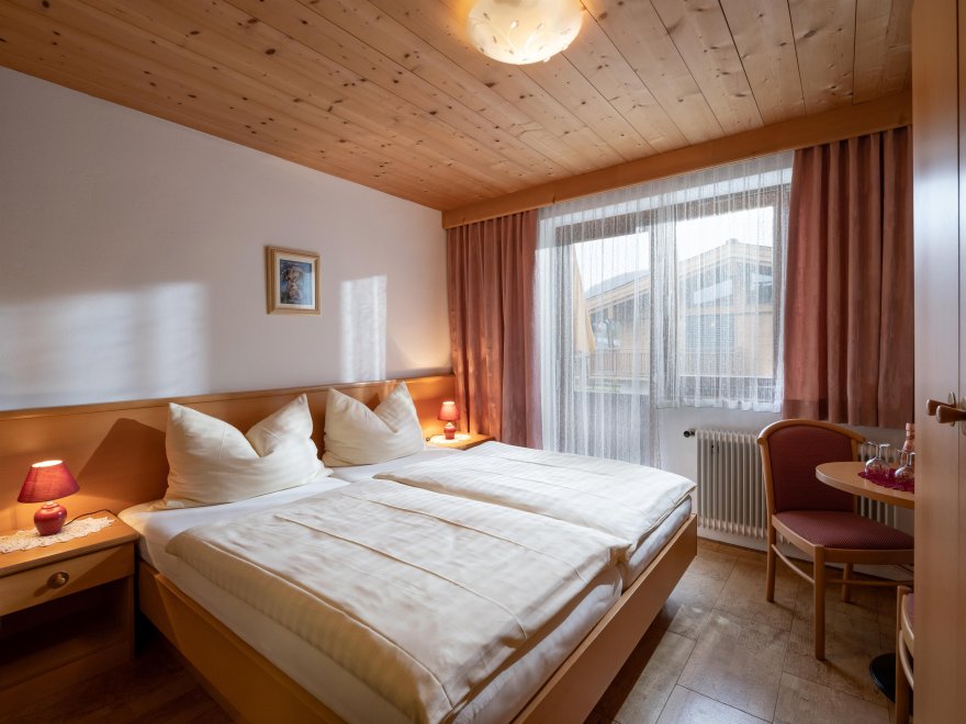 Das heimelige Doppelzimmer mit Dusche und WC bietet einen sonnigen Balkon und Flachbild-TV.