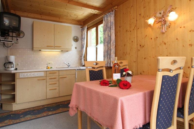 Rustikale und gemütliche Ferienwohnung (42 m²) bestehend aus 1 Schlafzimmer mit DU/WC, 1 Wohnschlafzimmer mit DU/WC, Küche mit Esstisch und Sonnenbalkon.