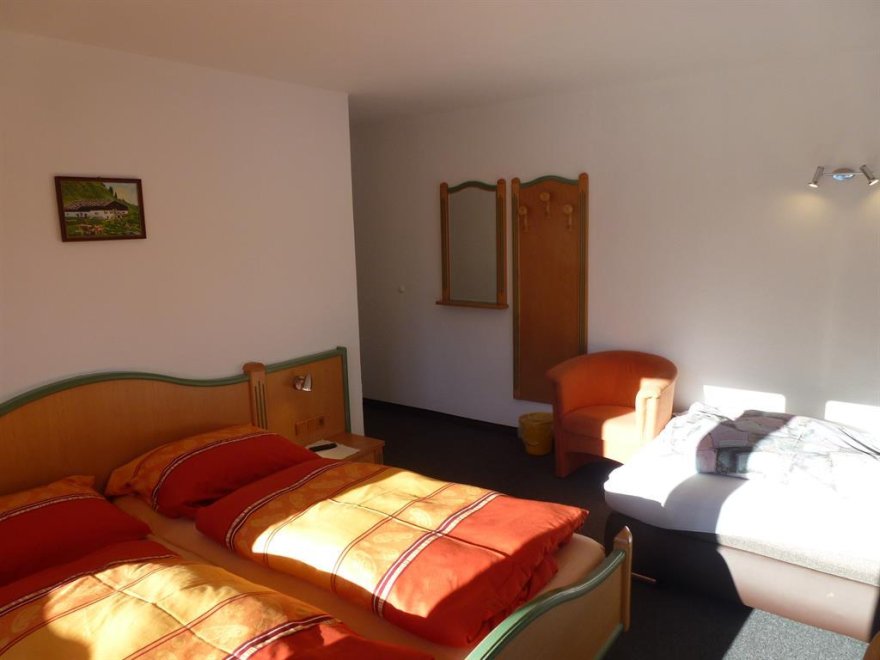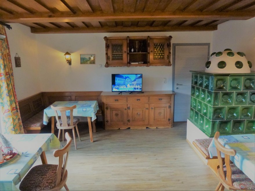 Rustikale Ferienwohnung im 1. Stock mit 5 Schlafzimmern mit Doppelbett und Du/WC, Küche mit Essecke, Wohnzimmer, Sat-TV, Balkon, 120 m².