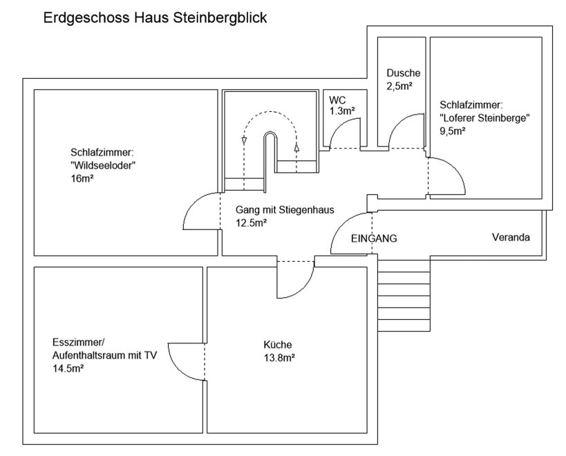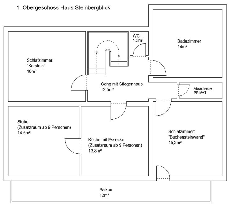Das "Ferienhaus Steinbergblick" bietet sich für Familien und Gruppen bis zu 11 (ev. 12) Personen an, die in 6 Doppelzimmern untergebracht sind. Der Außenbereich mit Sitzgelegenheiten und Liegewiese bietet ideale Voraussetzungen zum Erholen und Entspannen.