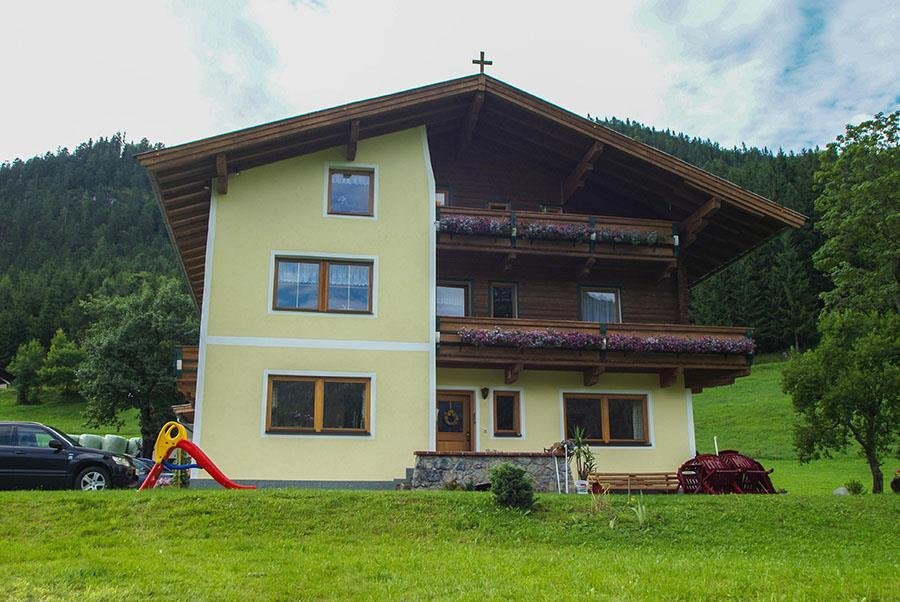 Gemütliche Wocheneinheit im Nebengebäude des 800 Jahre alten, renovierten Bio-Bauernhofes. Sonnige, ruhige Lage am Waldrand. 4 km entfernt vom Ortszentrum und der Gondelbahn. Ideal für den Familienurlaub. Spielplatz mit Trampolin. Skibushaltestelle, Langlaufloipe, Eisstock-/Asphaltbahn, Rad- und Wanderwege in nächster Nähe. Großer Garten, Grillplatz und Liegewiese. Wohneinheit besteht aus 4 DZ, 2 EZ, Bad/WC, WC und großem Aufenthaltsraum mit kompletter Küche.