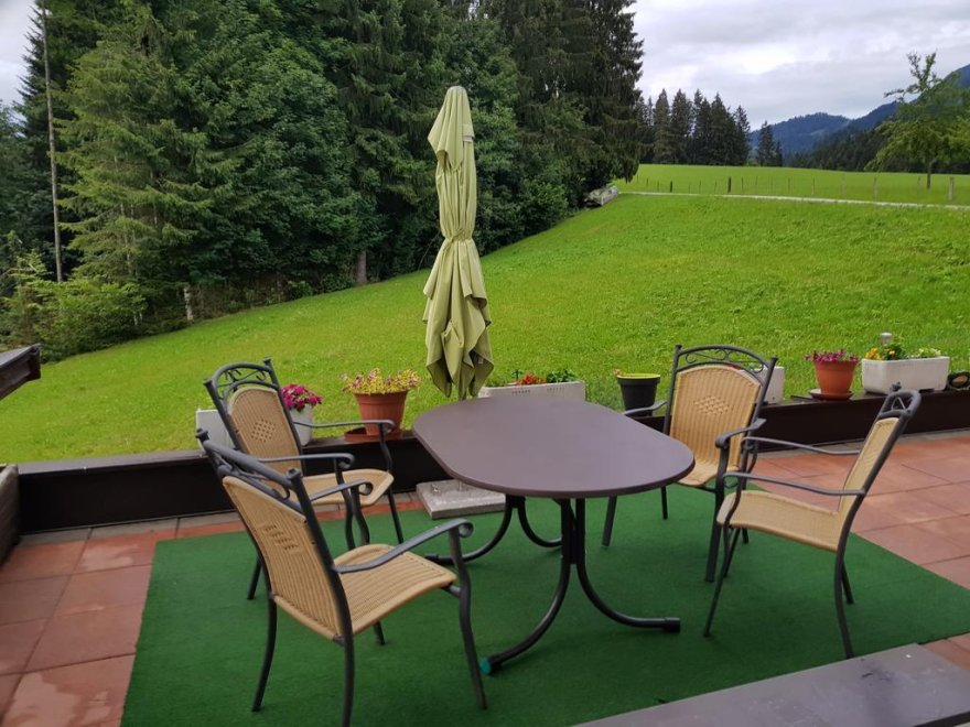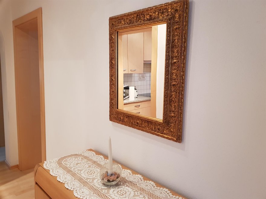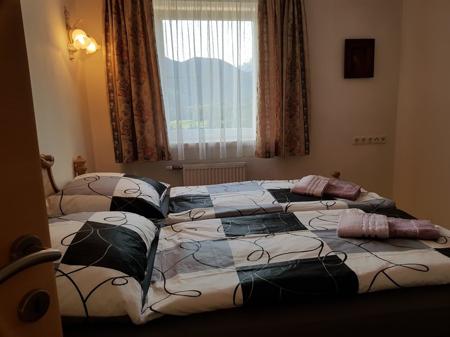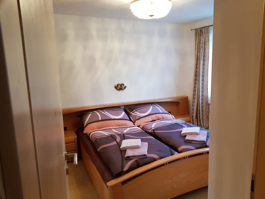 Geräumige Ferienwohnung für 2 - 5 Personen mit 2 Schlafzimmer, Küche, Wohnschlafraum mit Essplatz, 1 Badezimmer mit Dusche, WC, Waschmaschine, Wäschetrockner und Terrasse.