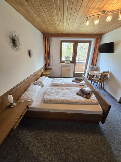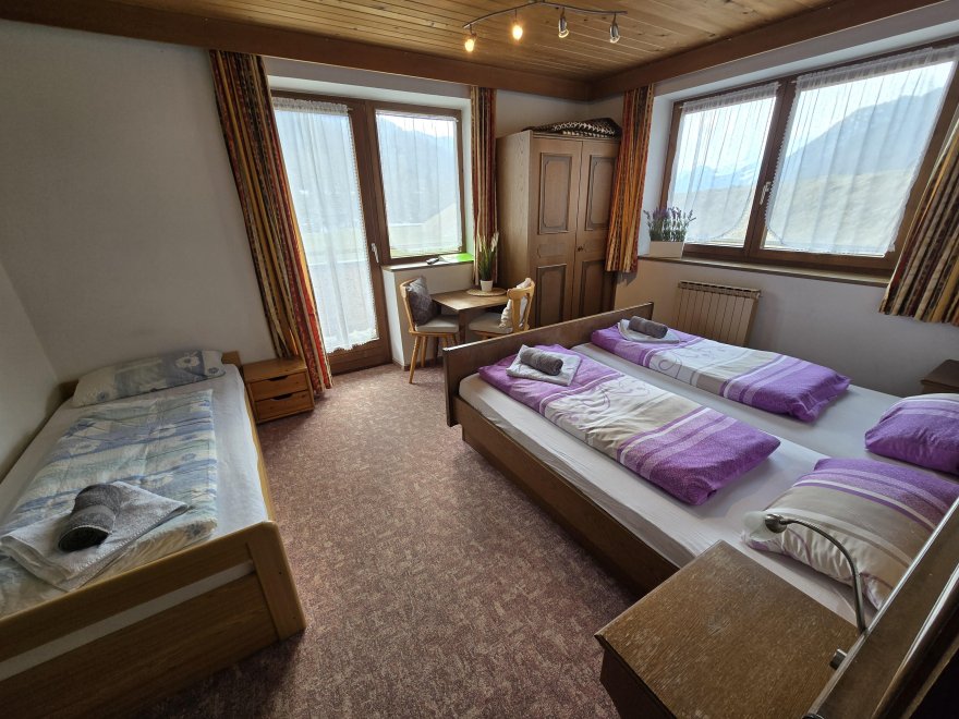 Gemütlich im ländlichen Stil eingerichtet ist das Dreibettzimmer, mit sonnigem Balkon. Einfach zurückziehen und die wohnliche Behaglichkeit genießen. Zum praktischen Zimmerkomfort gehören: Dusche/WC, Haarfön, Handtücher, Bettwäsche, Sat-TV, W-LAN (gratis) und eine gemütliche Sitzgelegenheit. Entspannen sie sich inmitten wunderbarer Natur bei uns am "Weindlhof".