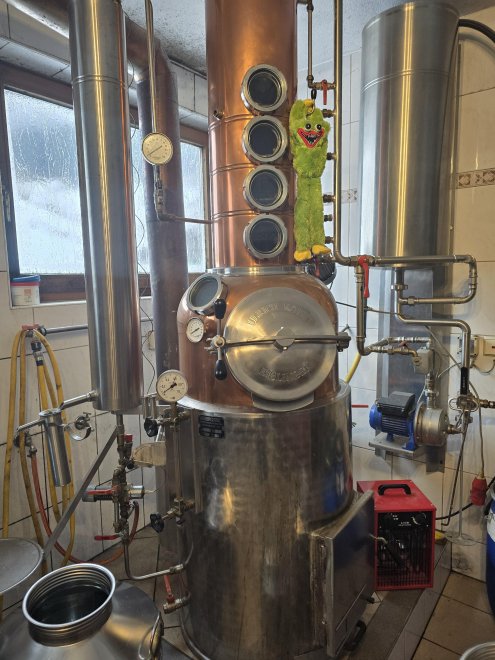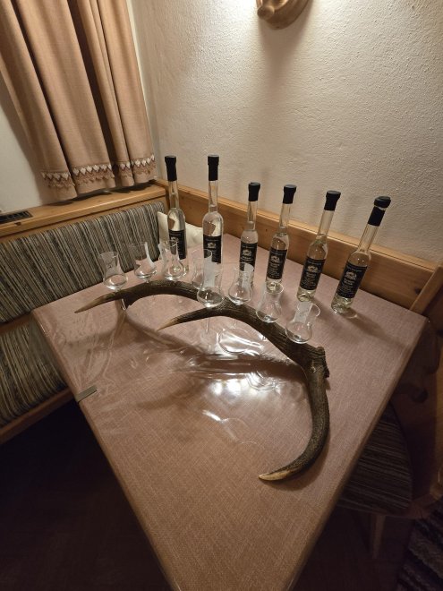 Wir bieten auch Schnäpse an, die wir eigens für sie am Hof brennen.