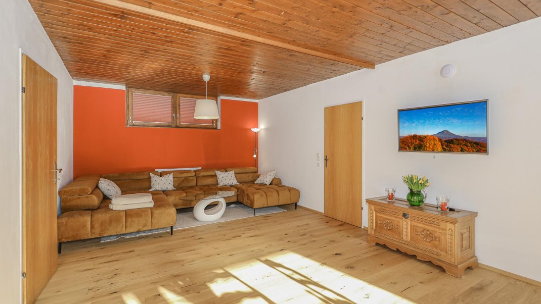 Enjoy the absolute peace and quiet on the Schloßberg. The flat offers space for up to 6 people. The unspoilt location offers a breathtaking view of the surrounding mountains. The large terrace and the large garden offer plenty of outdoor space to relax.