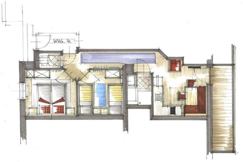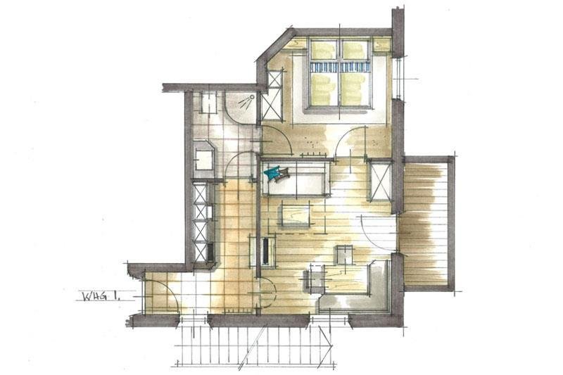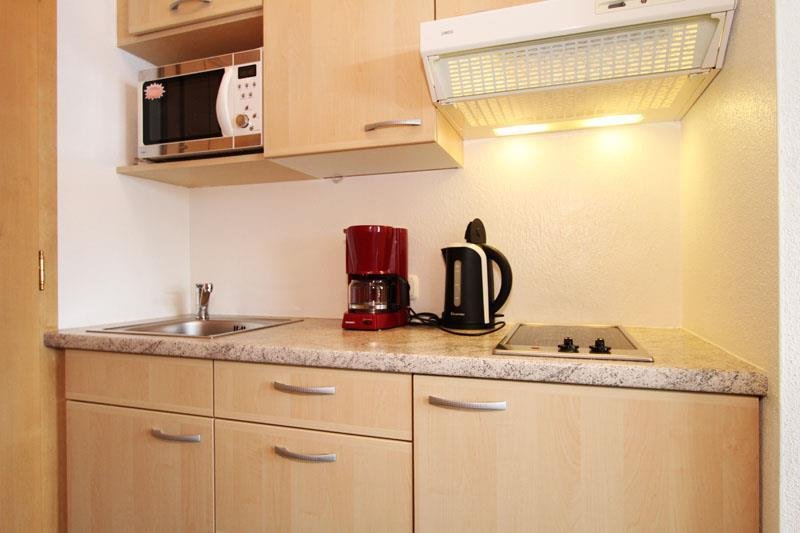 Small apartment including cooking facilities with microwave, coffee-machine; cable-TV, radio, bedroom with double-bed, cupboard, big balcony (eastfacing), separate entrance; 21 m²
